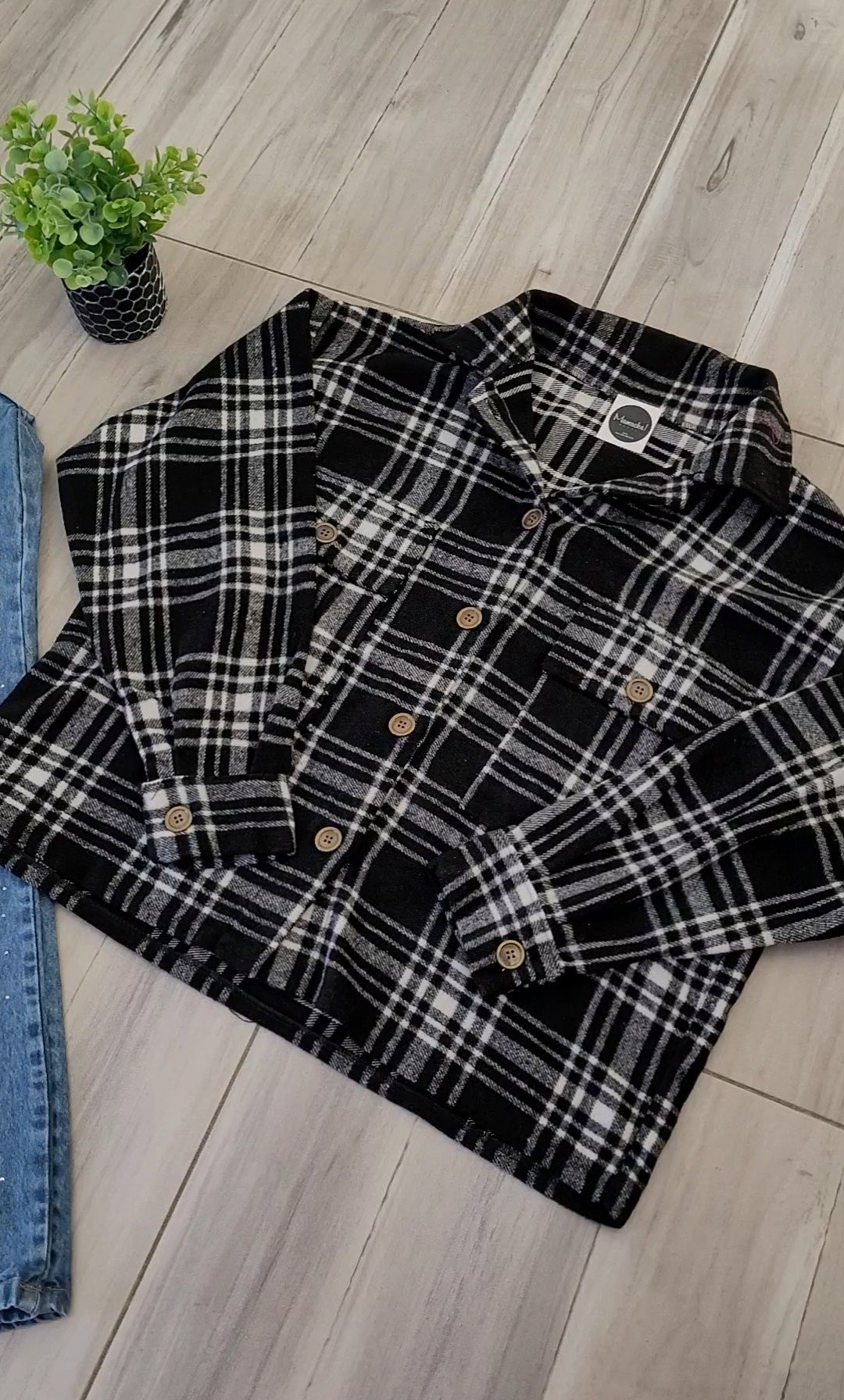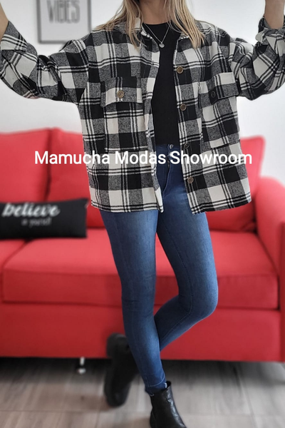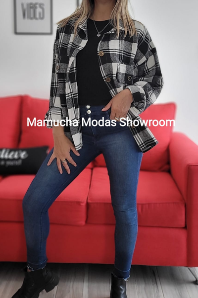 Camisaco de paño estampado con bolsillos y botones, muy amplio !