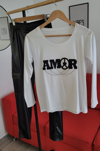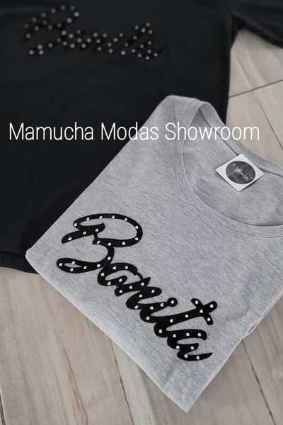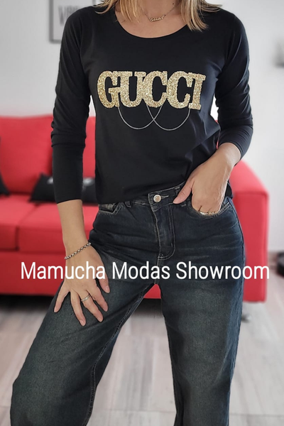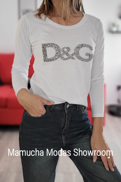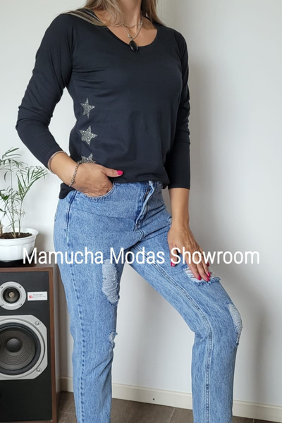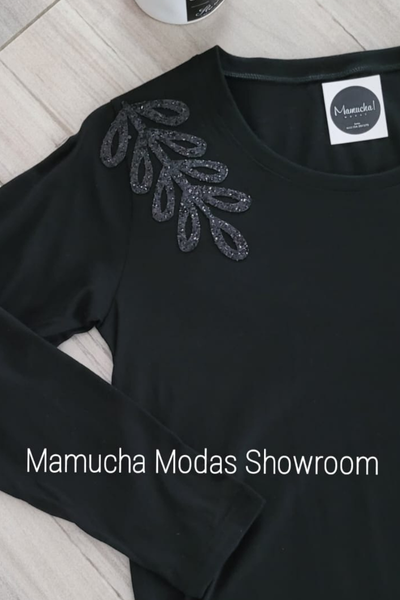 Remeras manga larga de algodón peinado con apliques de glitter o tachitas