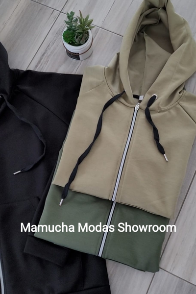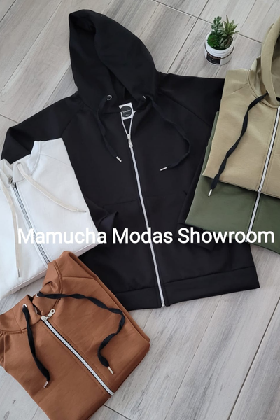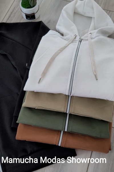 Campera lisa con capucha y bolsillos, muy suave y liviana , sin abrigo