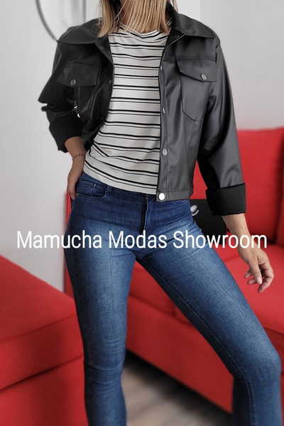 Campera negra engomada a la cintura , muy canchera !