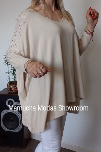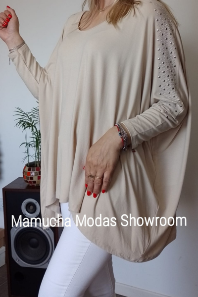 Remera de viscosa spandex, detalle de tachitas es mangas, muy amplia!
