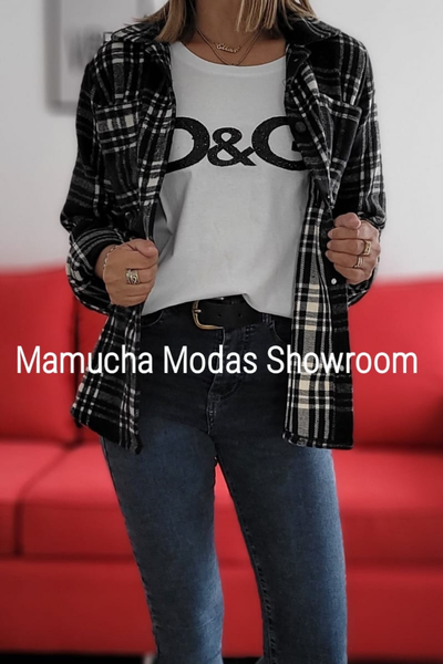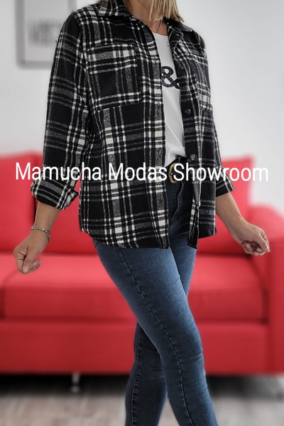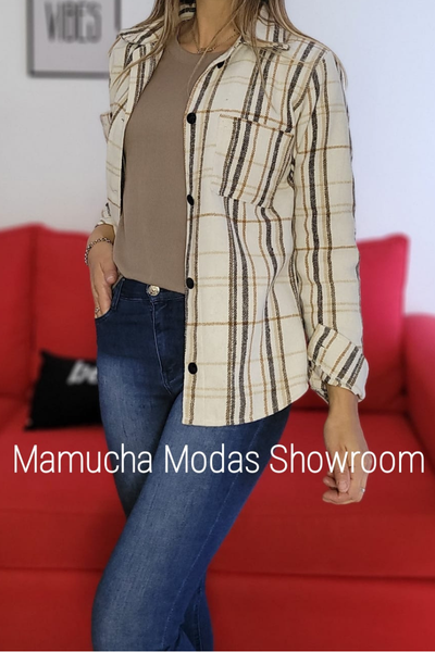 Camisa de paño estampada cuadrille y rayada , con bolsillo , muy suave y abrigada