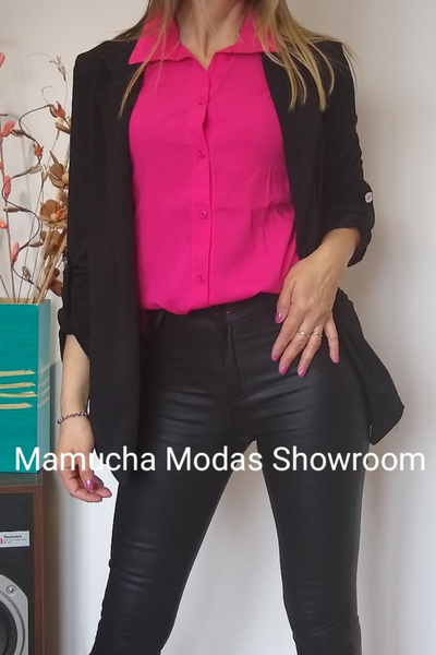 Camisa larga fibrana , irregular , con boton en manga ( se hace 3/4)