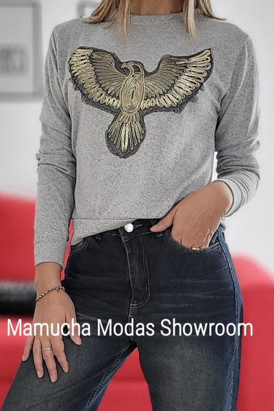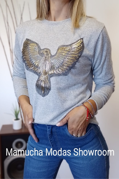 Sweaters de lanilla peinada con delicada Águila en dorado