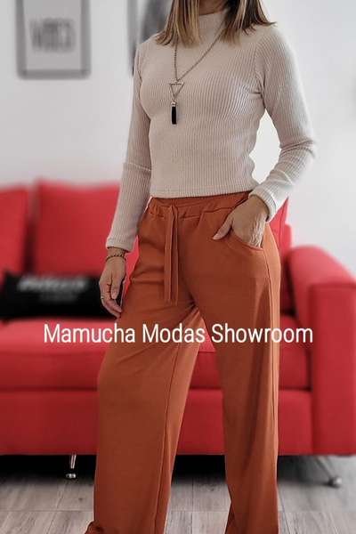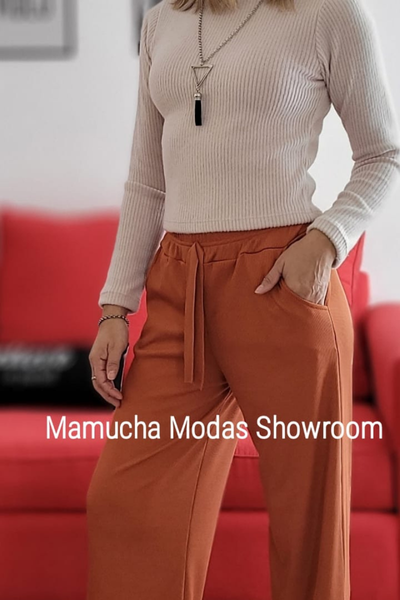 Palazzo de morley viscosa spandex frizado con lazo en cintura.