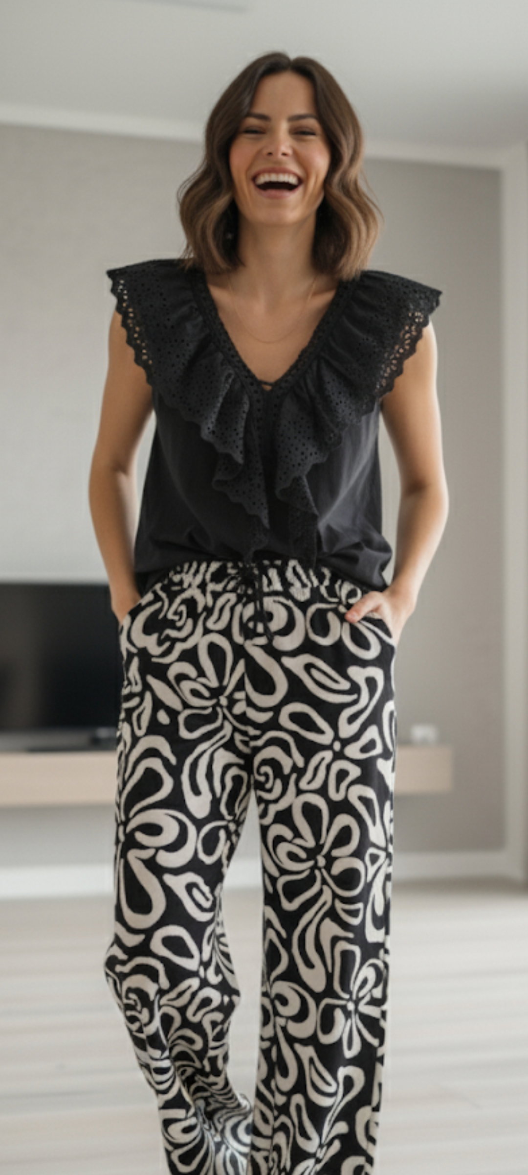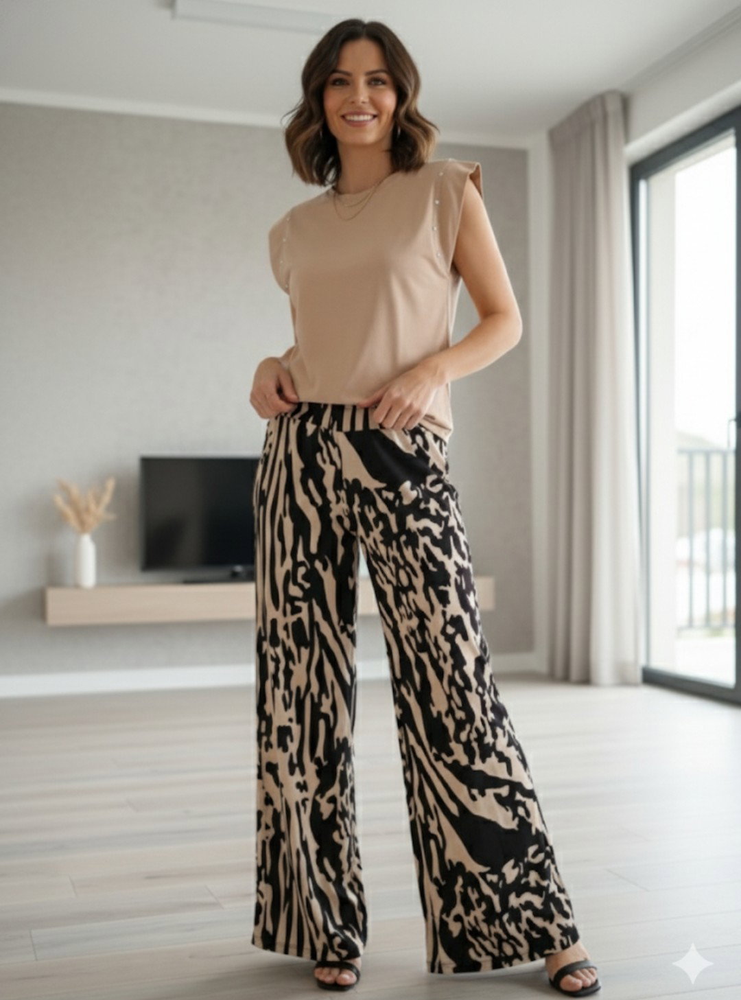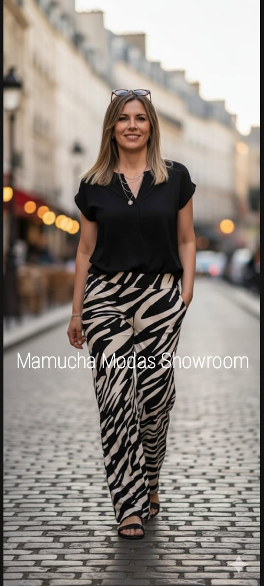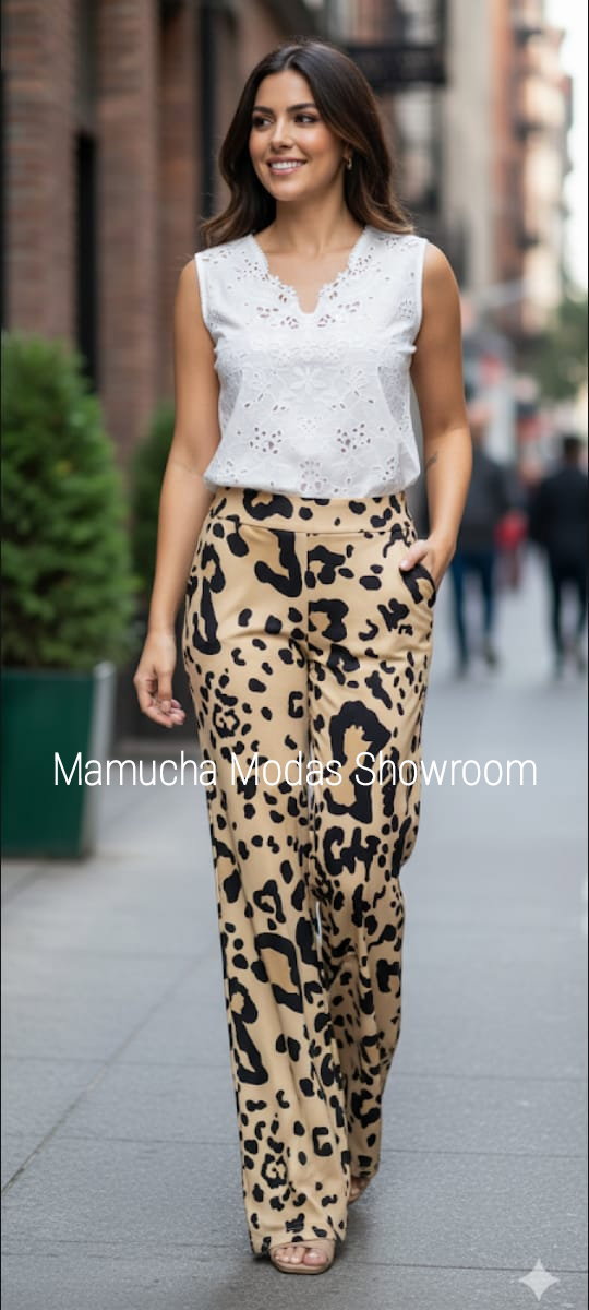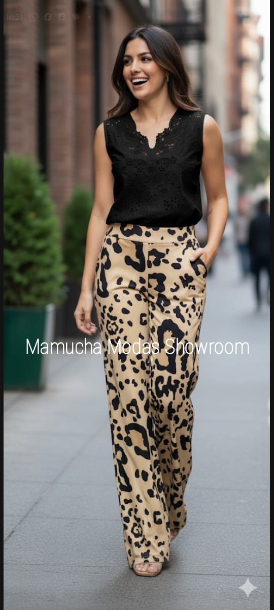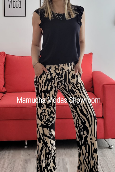 Palazzos de crepe estampados con bolsillos, muy modernos !