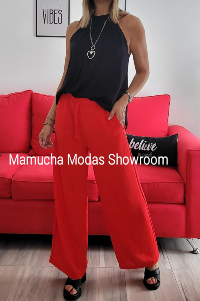 Paladao de seda cey con cintura elastizada y bolsillos
