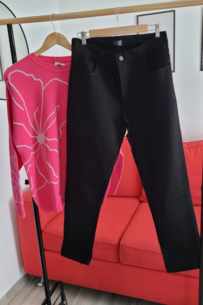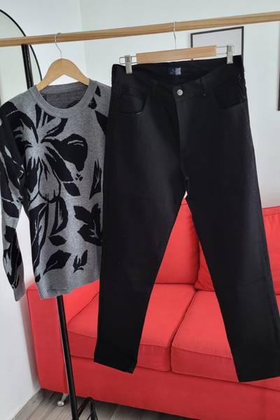 Jeans Negro cintura alta y semi recto con bolsillos adelante y atrás