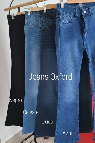 Jeans Modelo Oxford elastizado con bolsillos atrás.
