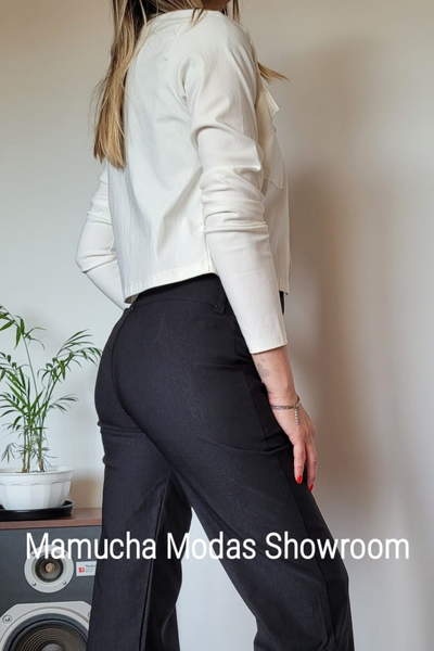 Oxford de bengalina elastizada cintura alta , con bolsillos adelante y sin bolsillos atrás. hermoso calce .