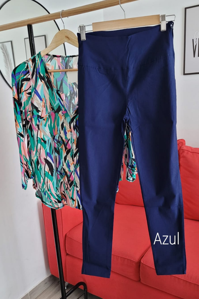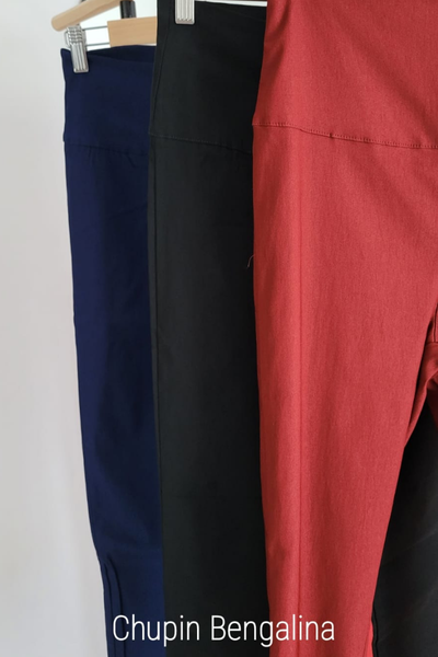 Pantalon de bengalina elastizado, cintura alta con cierre al costado y chupin.