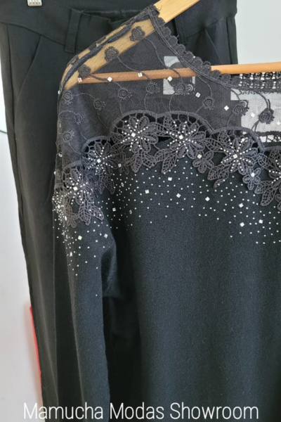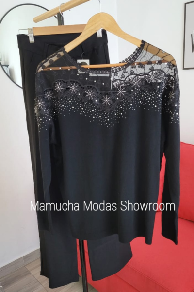 Sweaters importado de bremer spandex con detalle de tul bordado y tachitas , muy delicado y fino