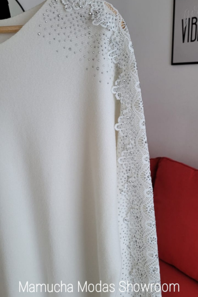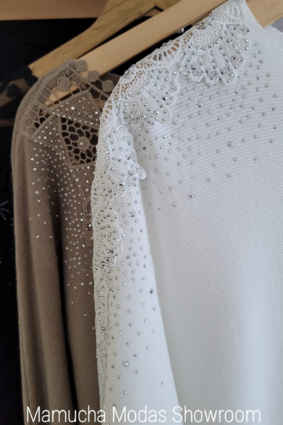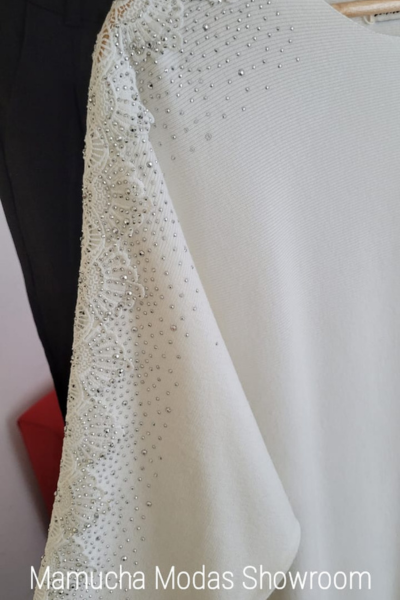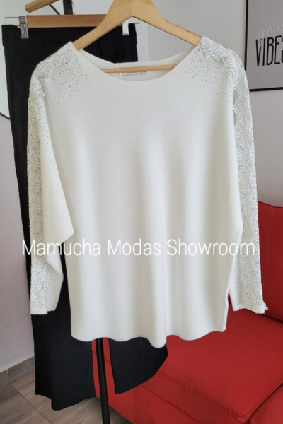 Sweaters importado de bremer spandex con detalle de broderie y tachitas en mangas