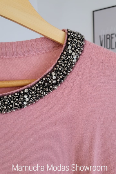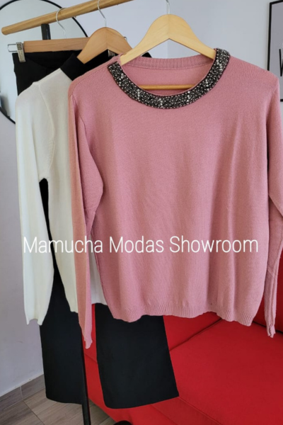 Sweaters de bremer spandex con detalle de perlitas en el cuello
