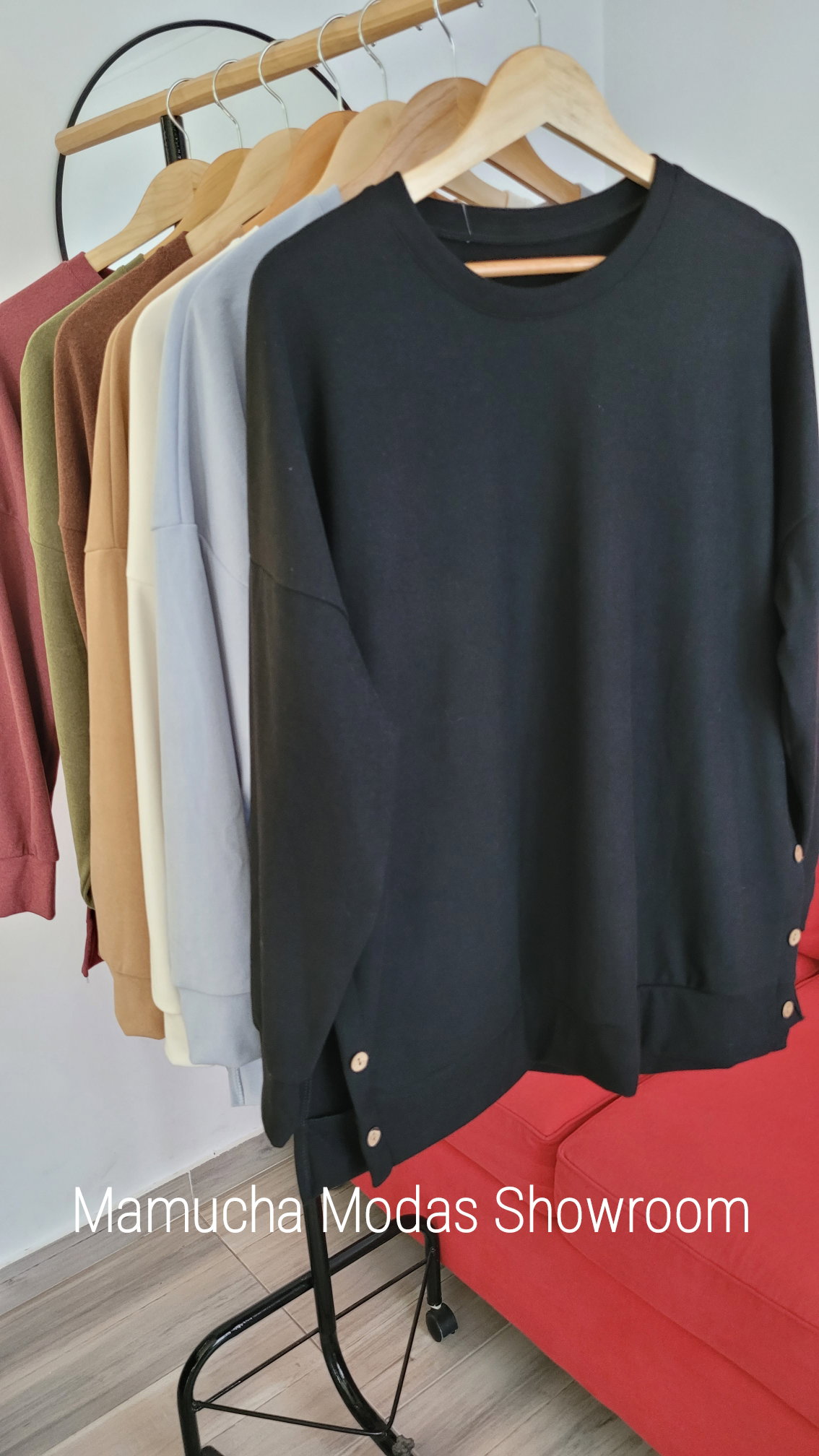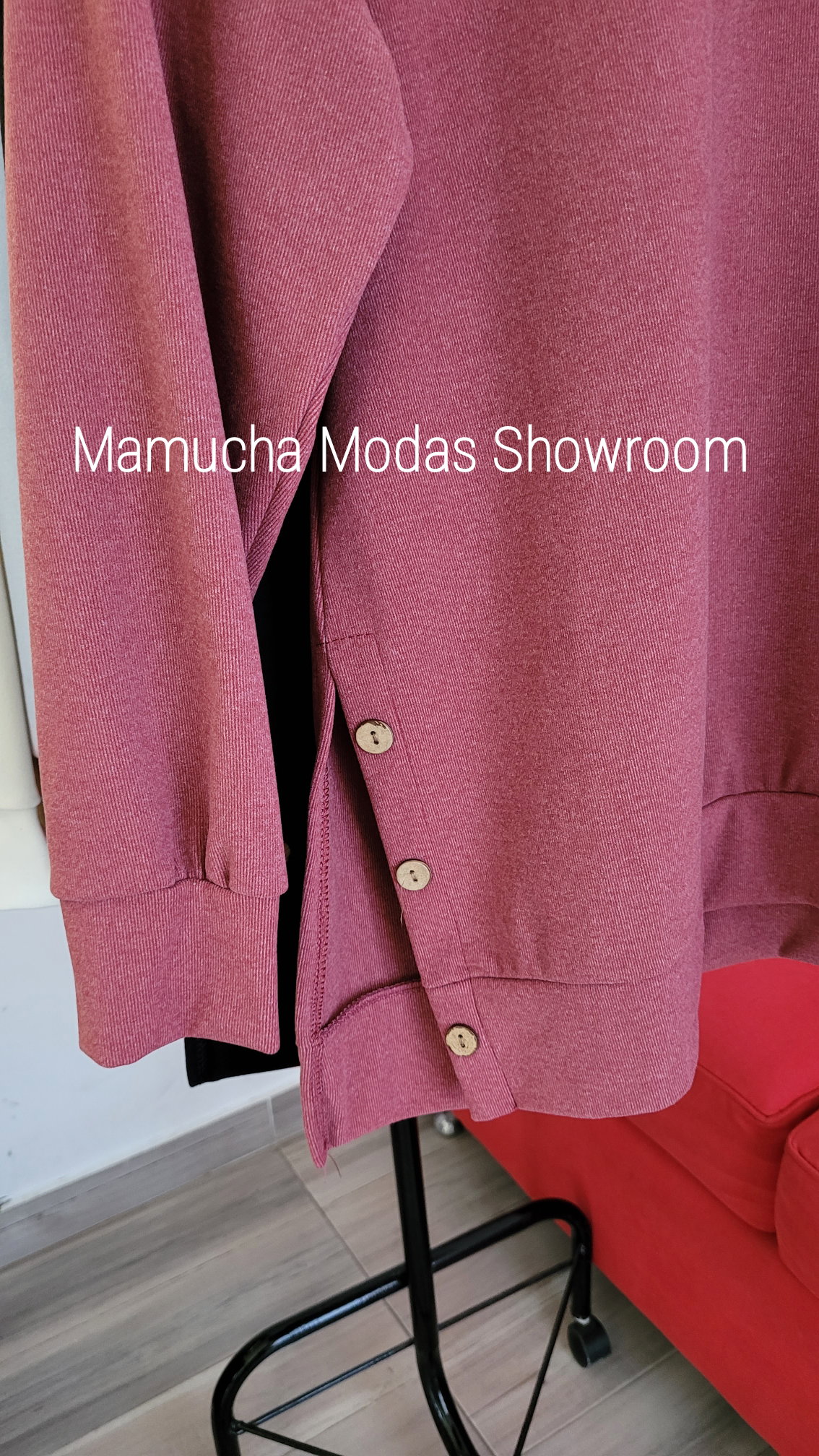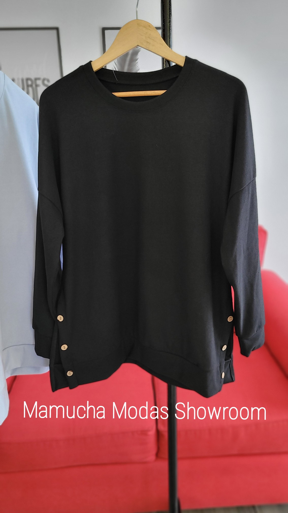 Buzo liso de Darlon con detalle de botones y tajo a los costados. Amplio.
