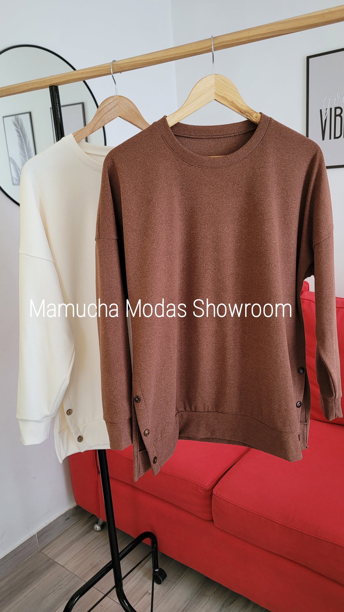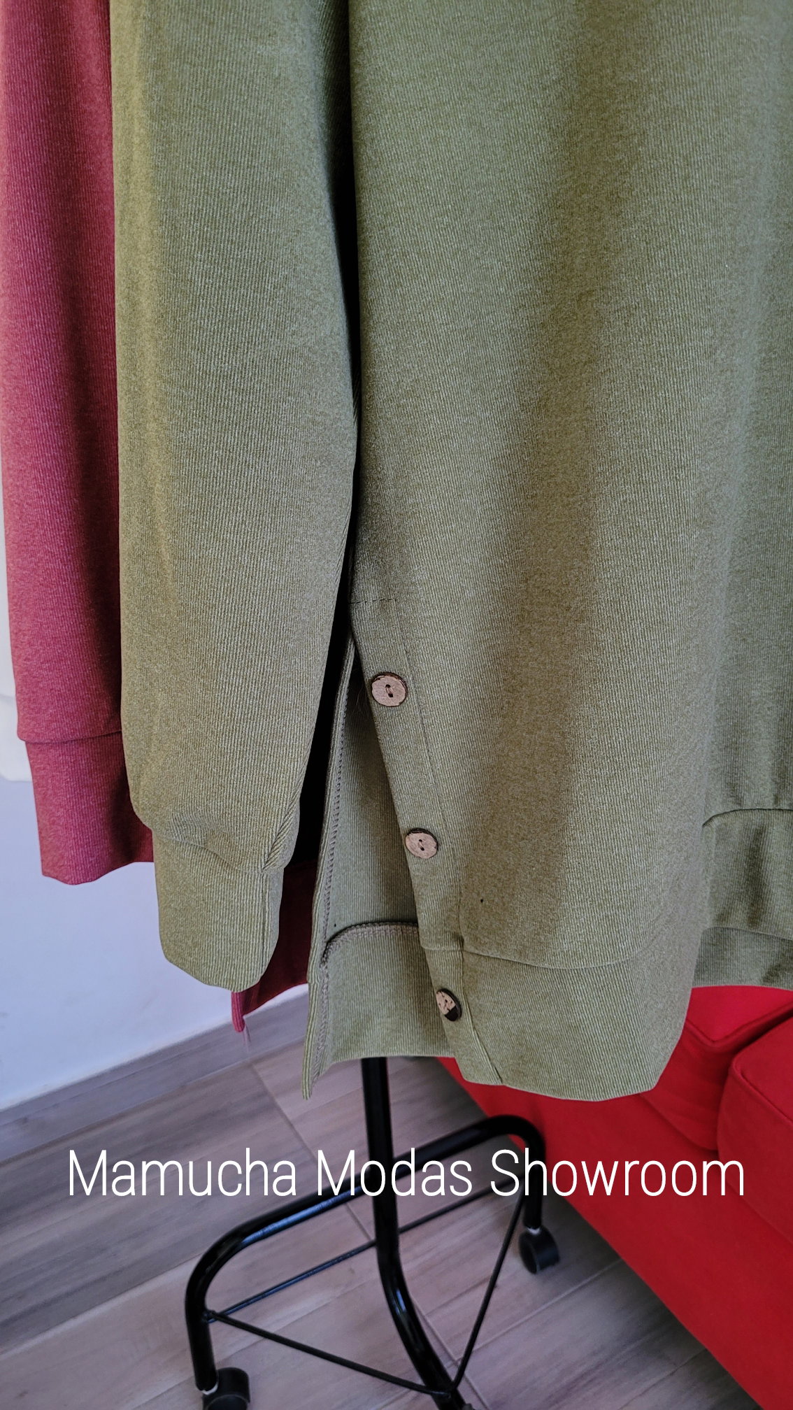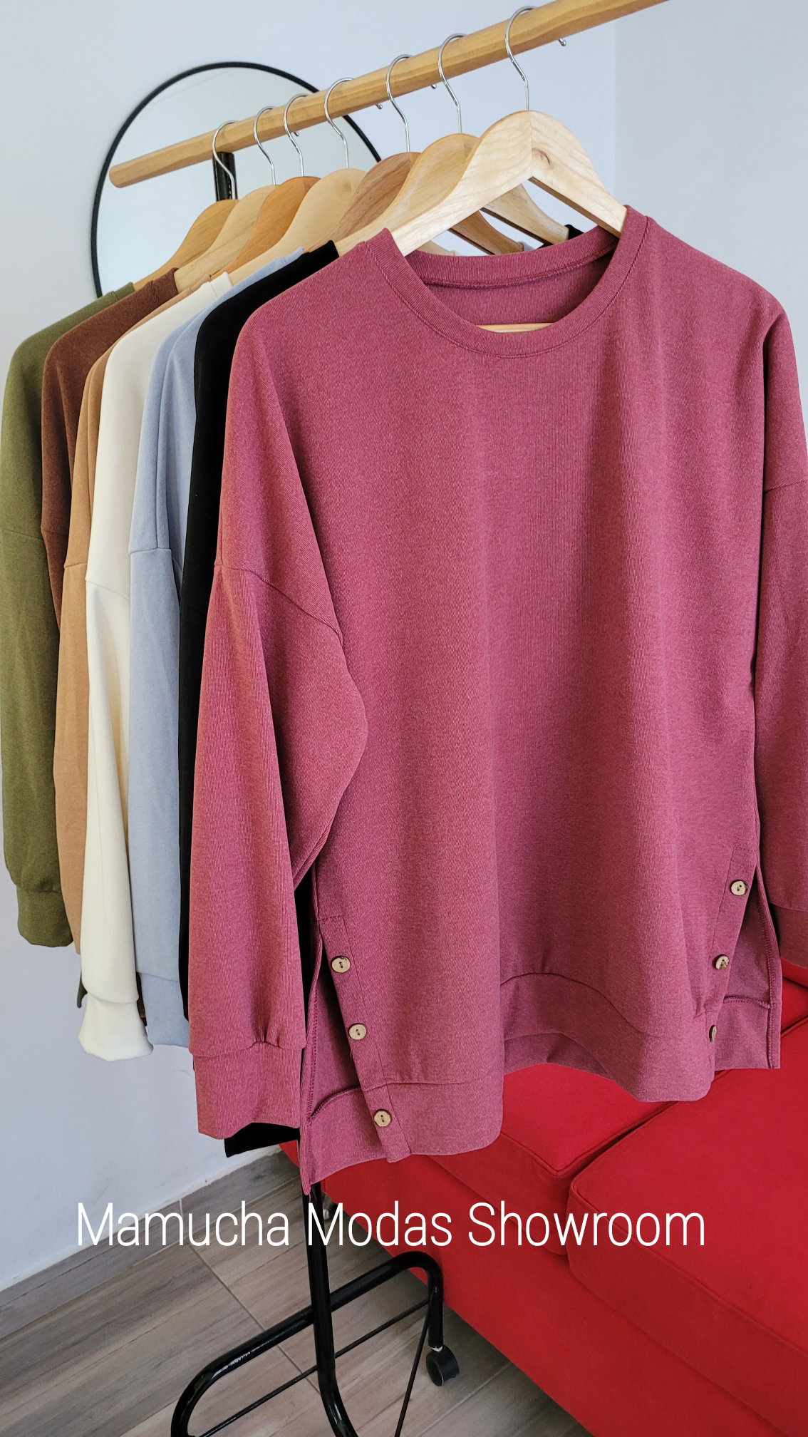Buzo liso de Darlon con detalle de botones y tajo a los costados. Amplio.