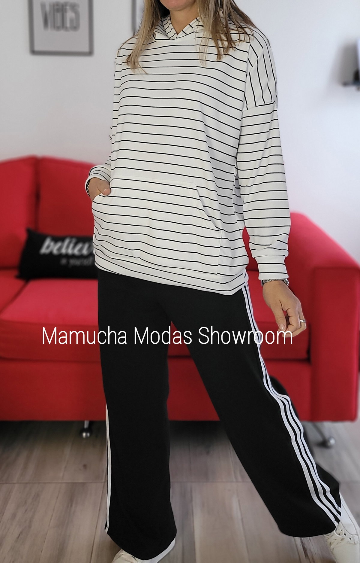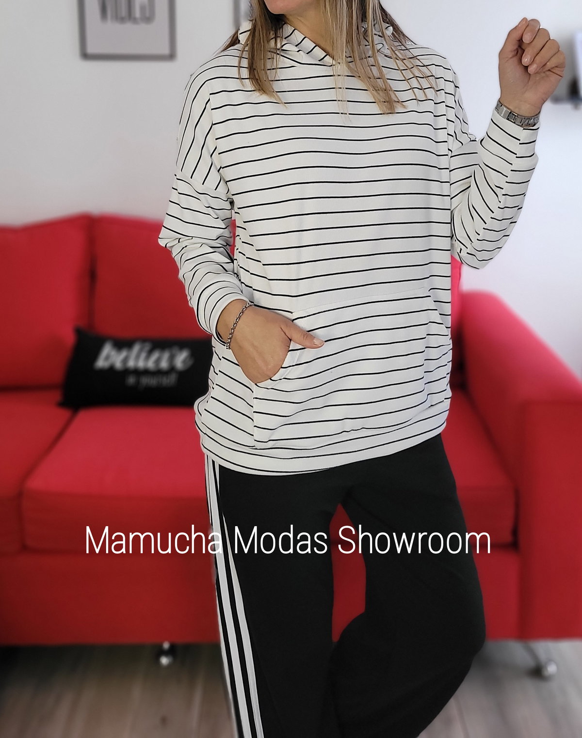 Buzo de Darlon Rayado con capucha y bolsillos.