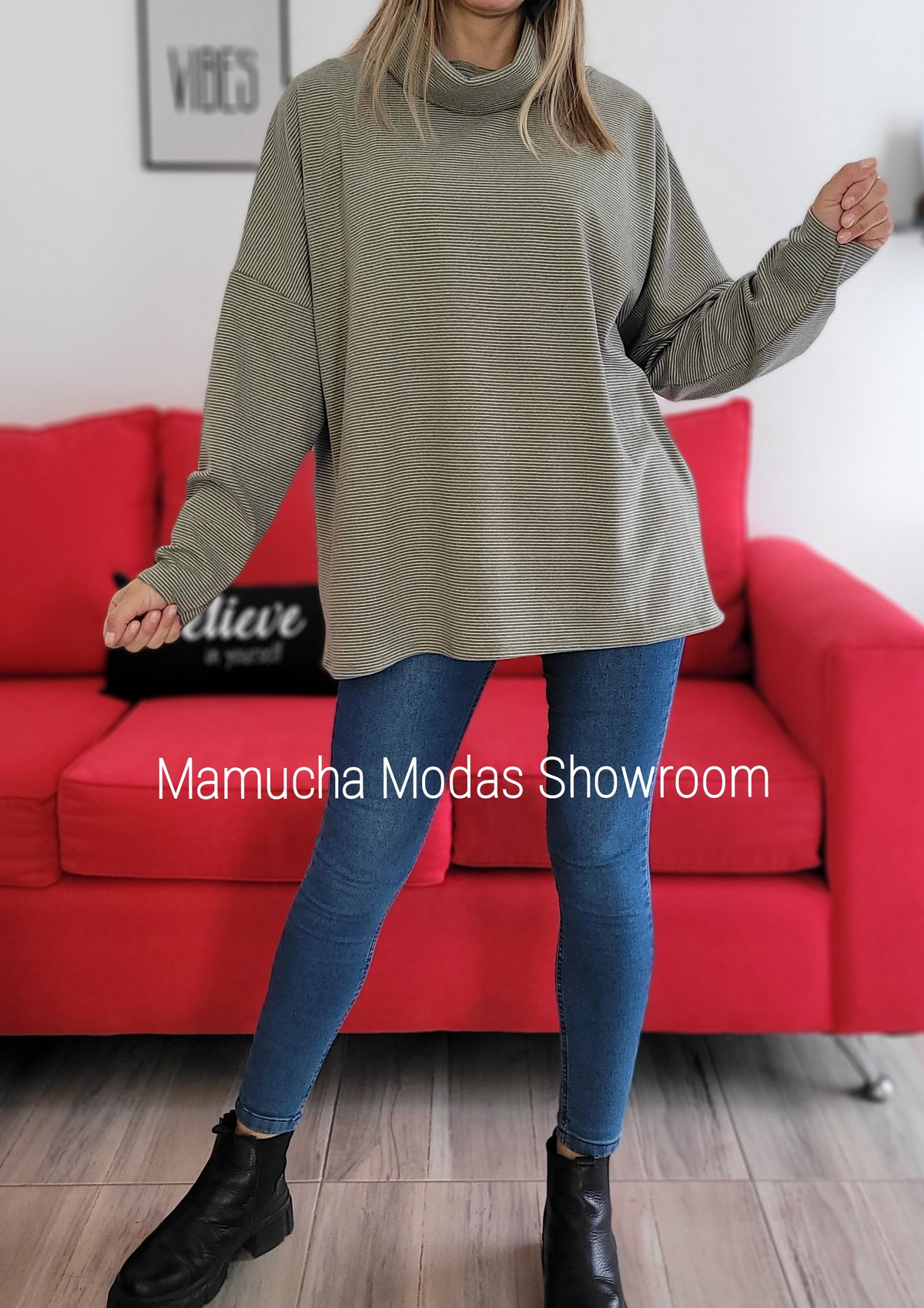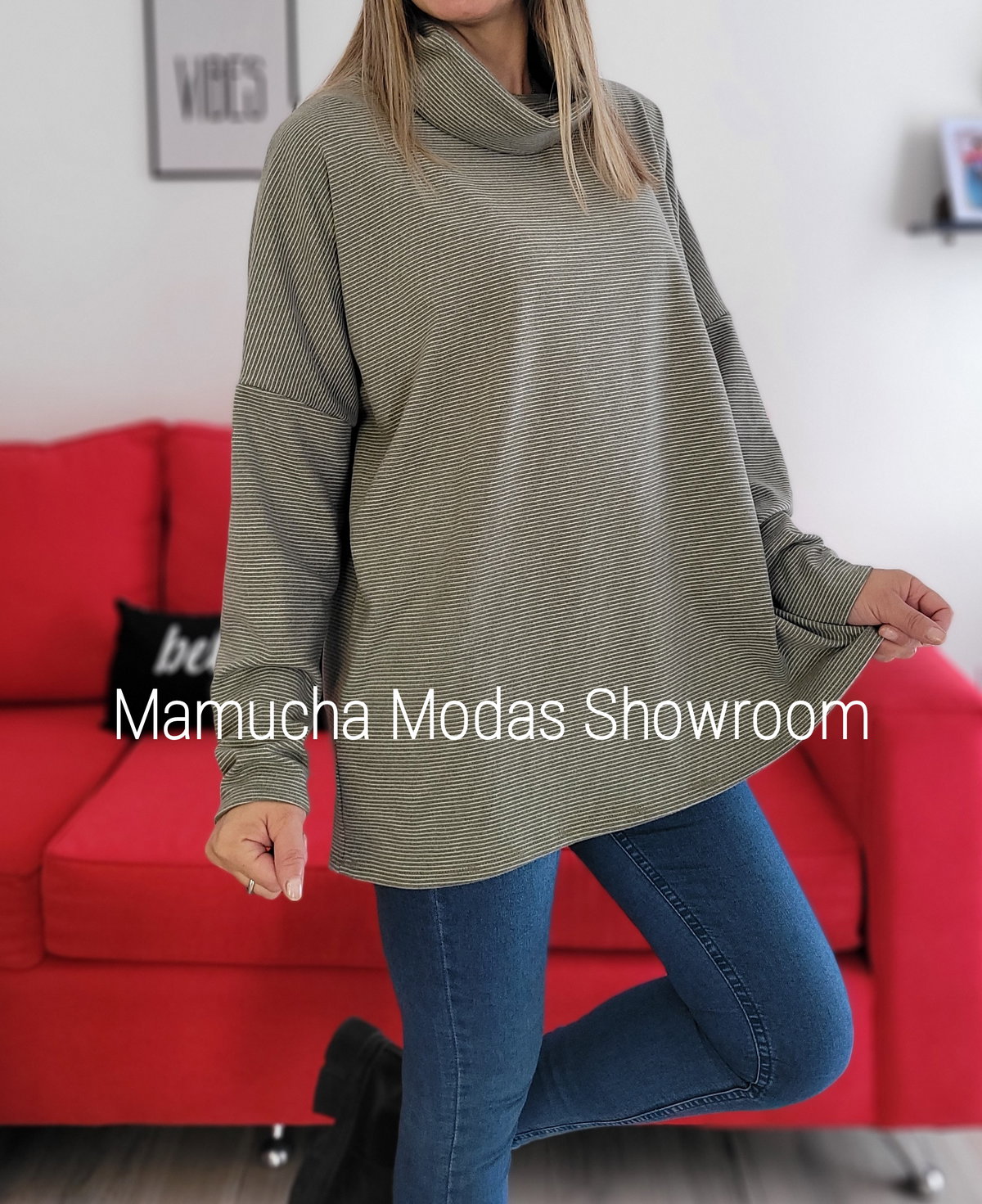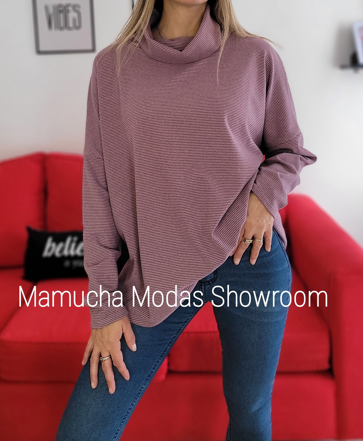 Poleron Oversize de Darlon Rayadito, cuello volcado , super Amplio !