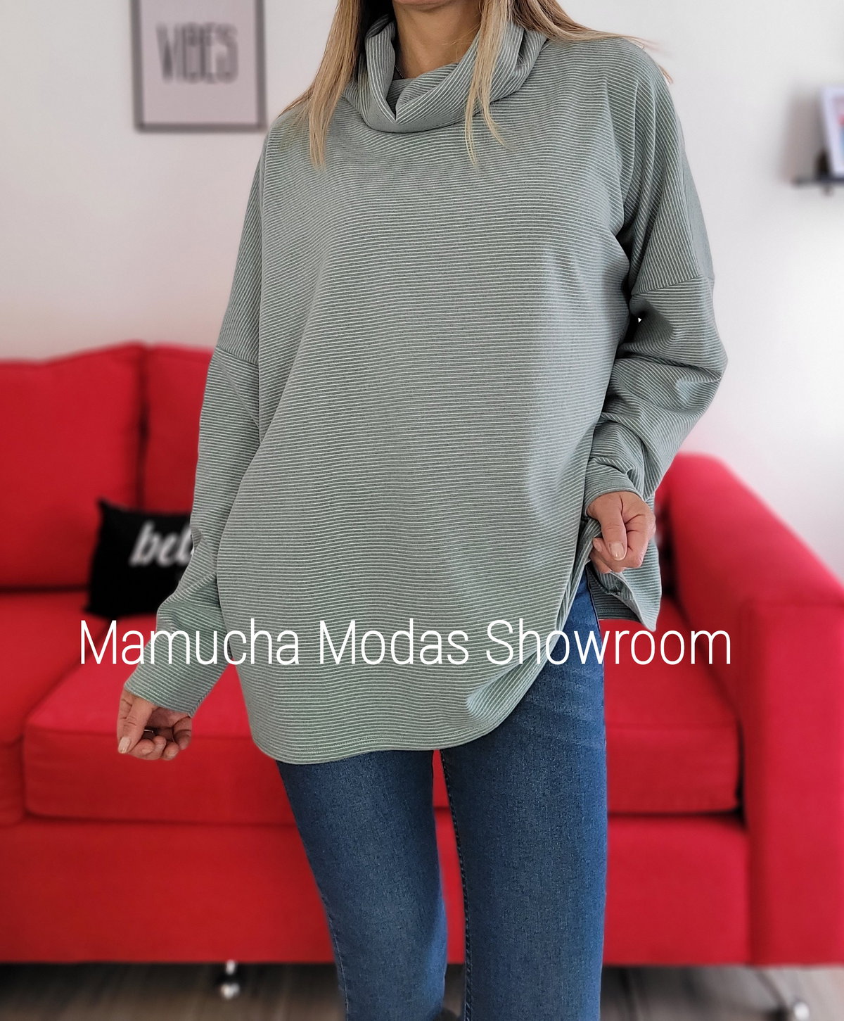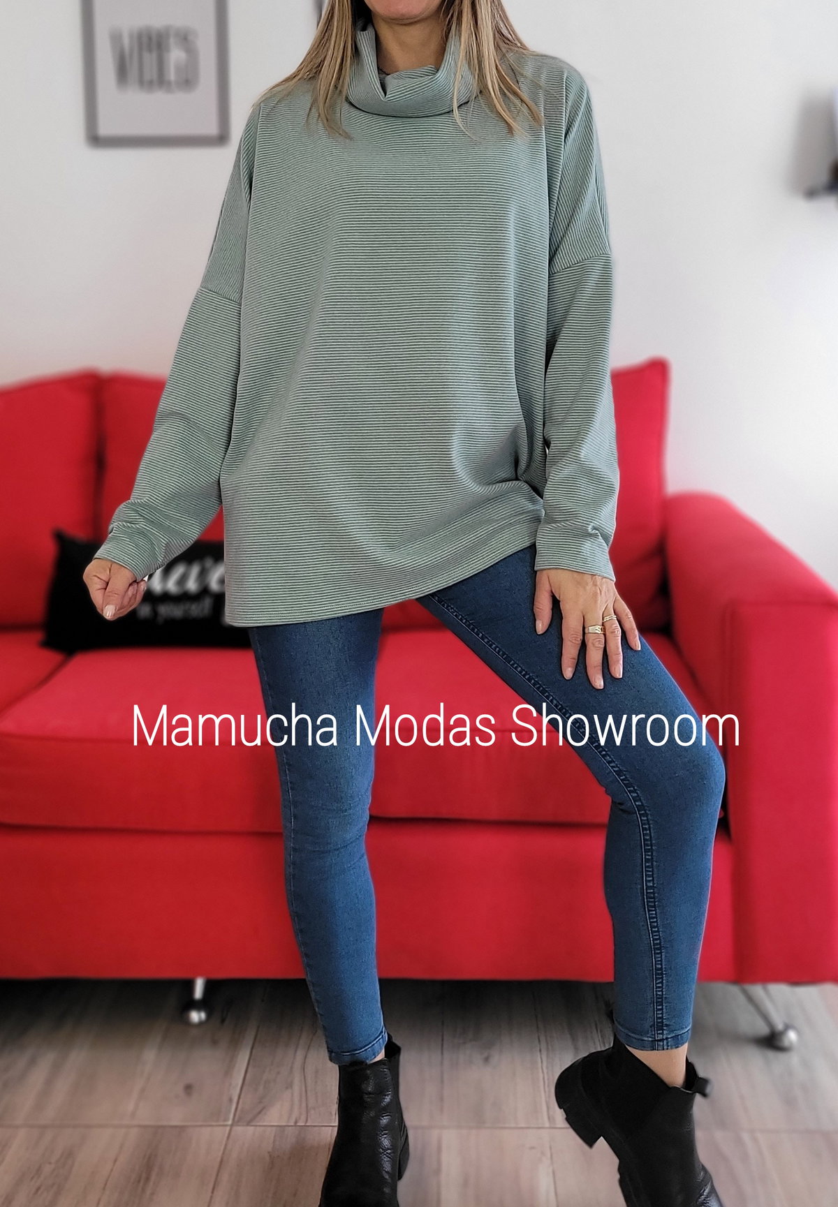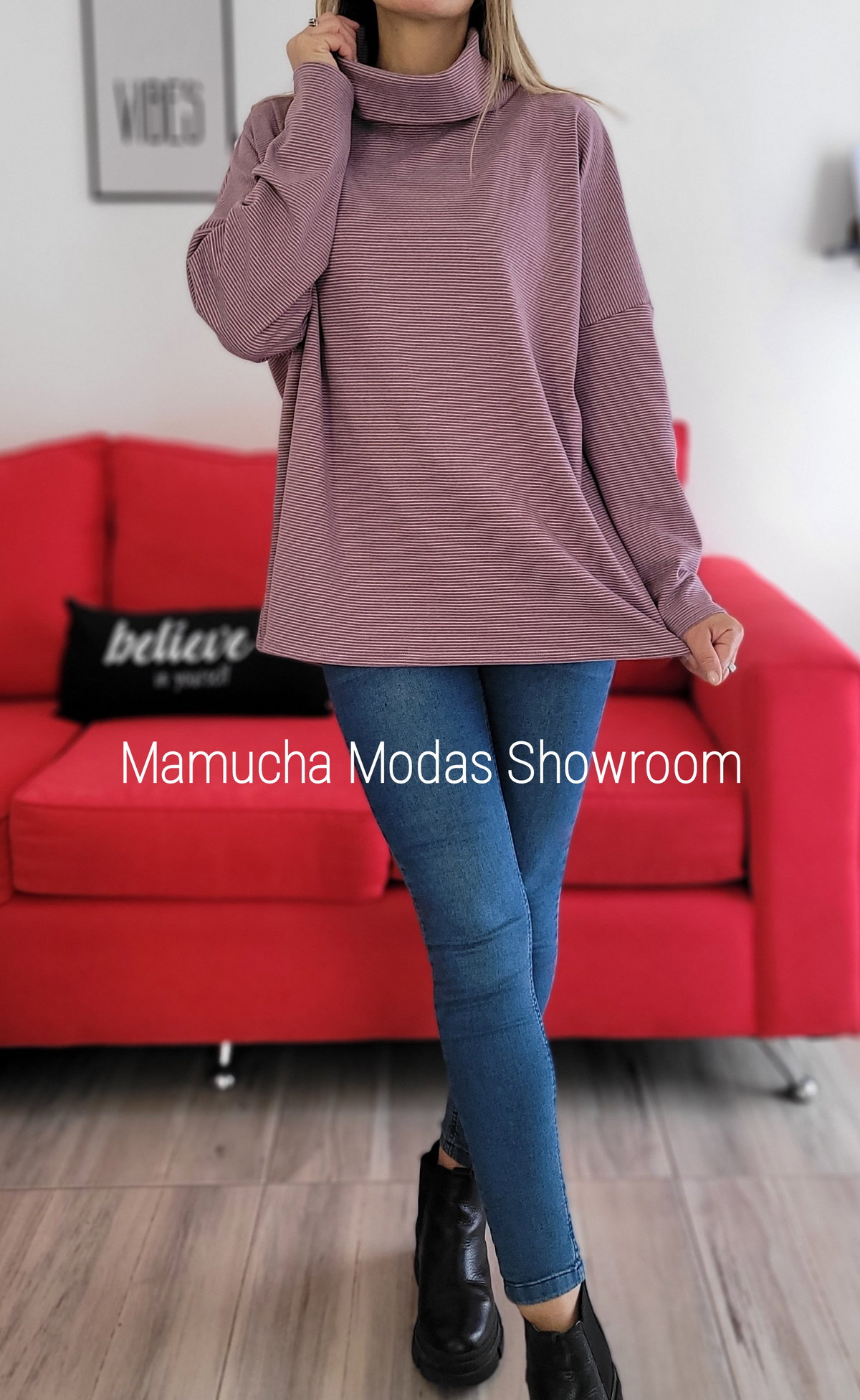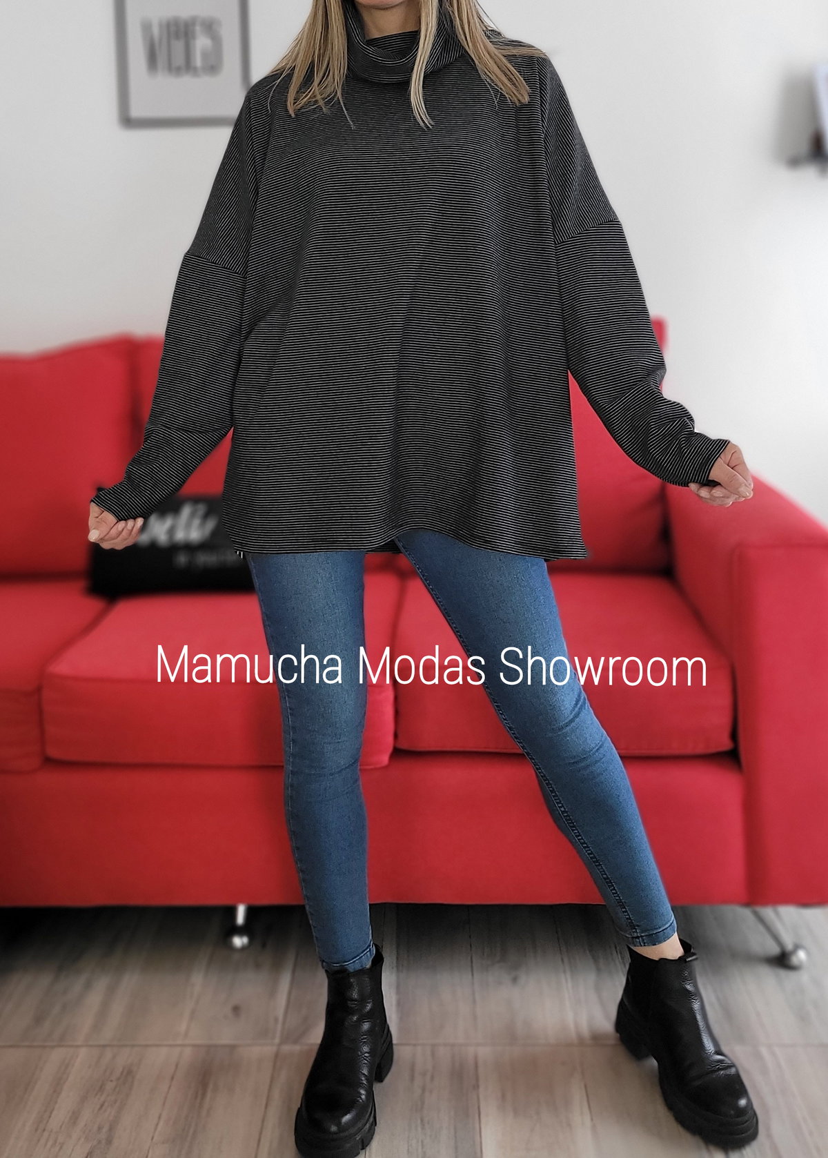 Poleron Oversize de Darlon Rayadito, cuello volcado , super Amplio !
