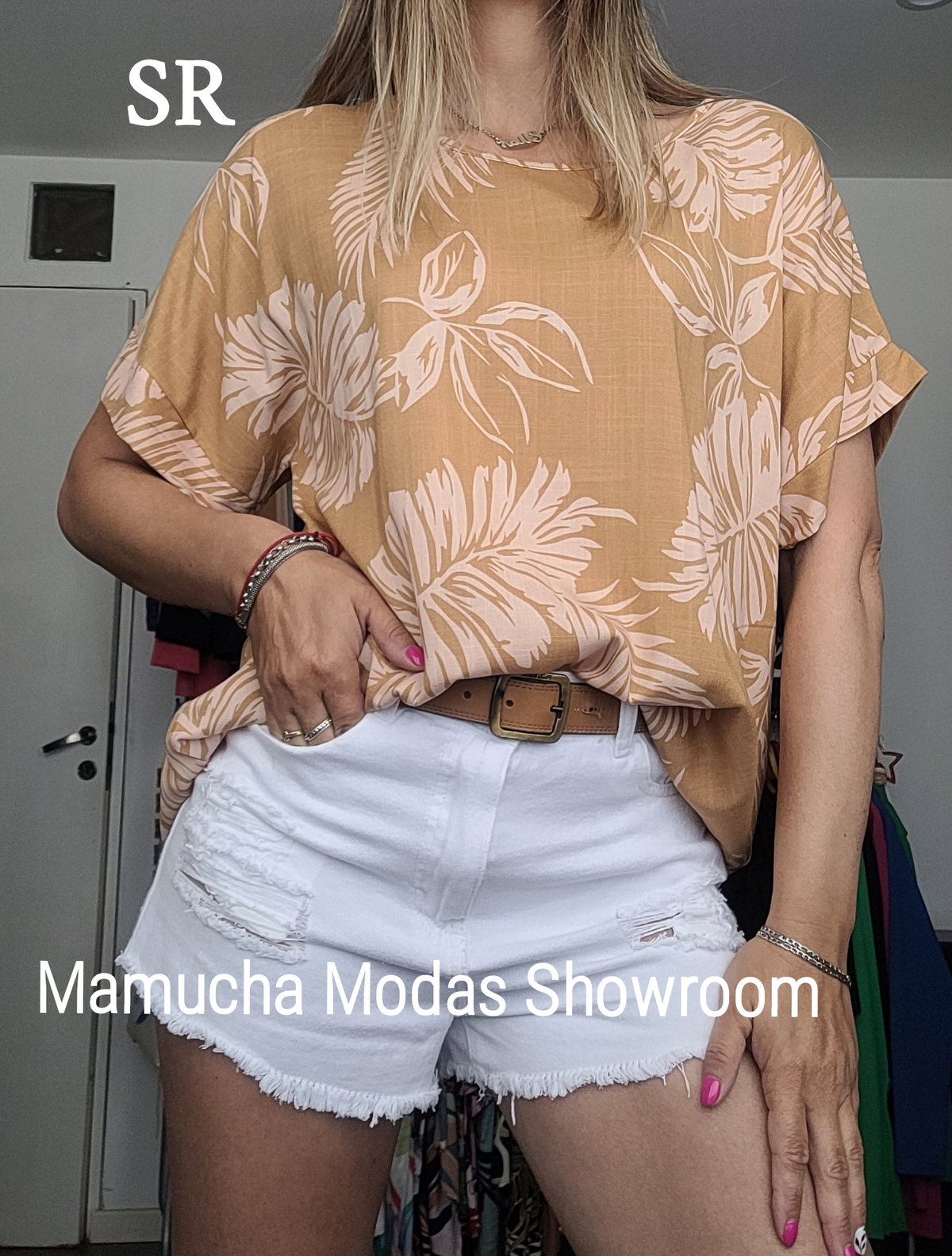 Blusa de lino spandex estampada.