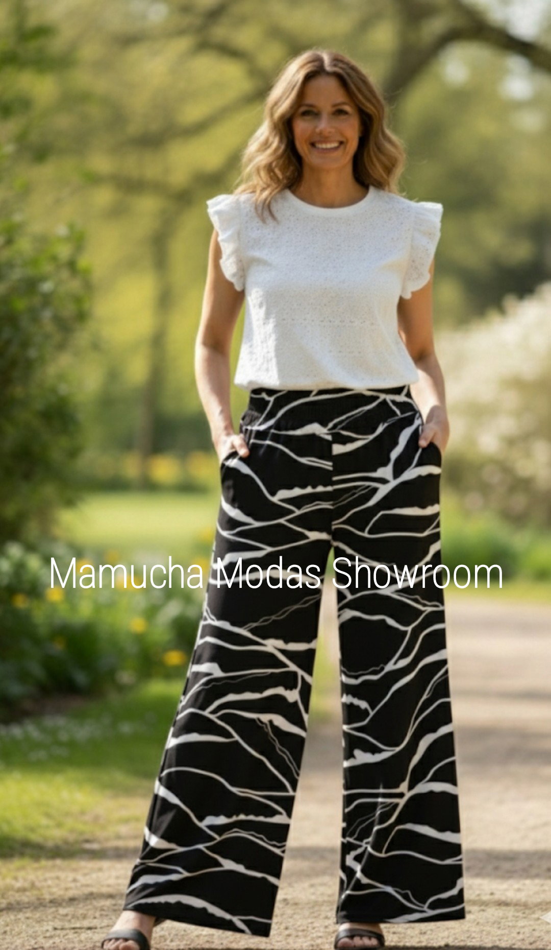 Maxi palazzo de Morley elastizado estampado, hay 3 estampados