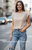Remera de morley elastizado con detalles plateados, manguita japonesa , en negra, blanca, beige y verde suave