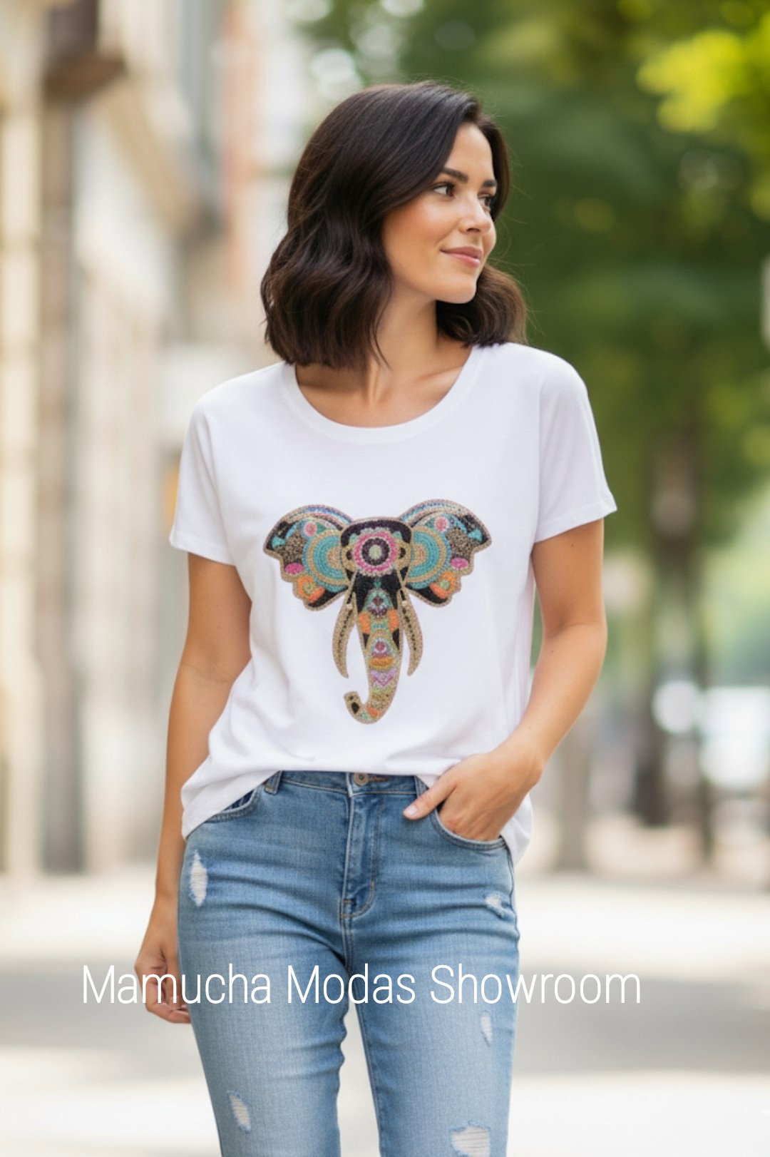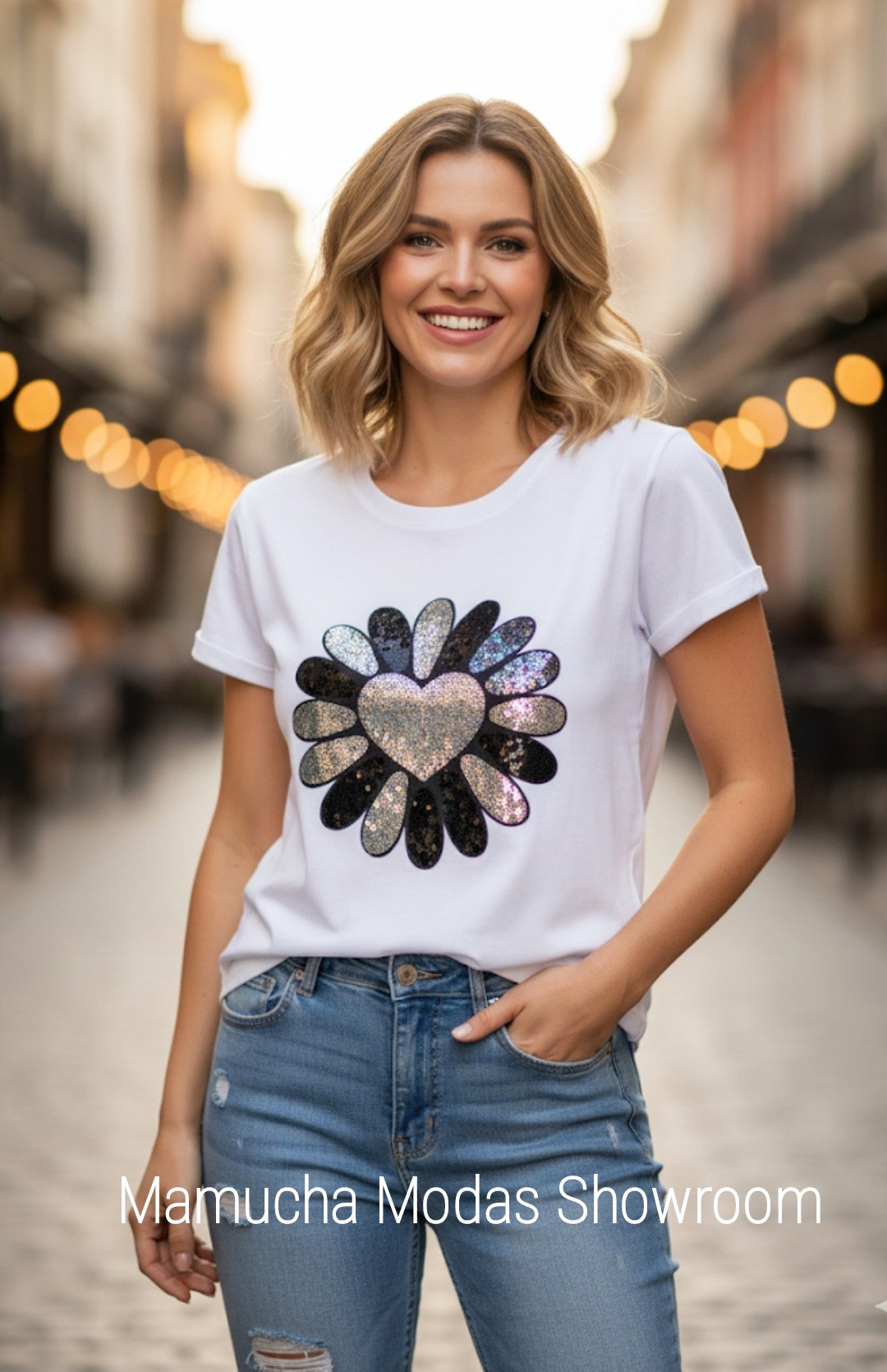 Remeras de algodón peinado con apliques de brillo , medida L/XL