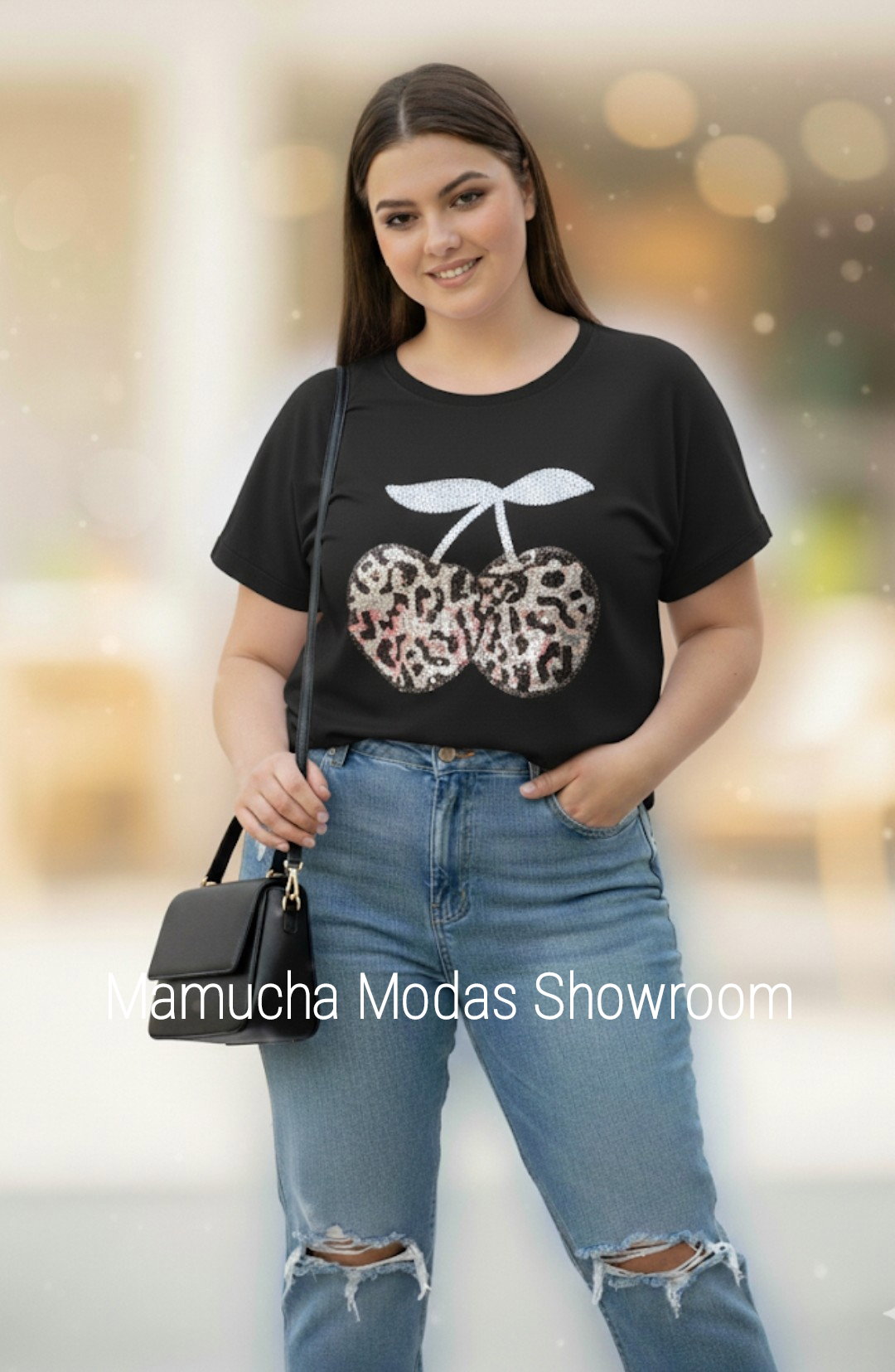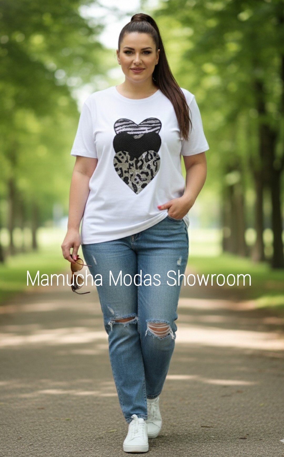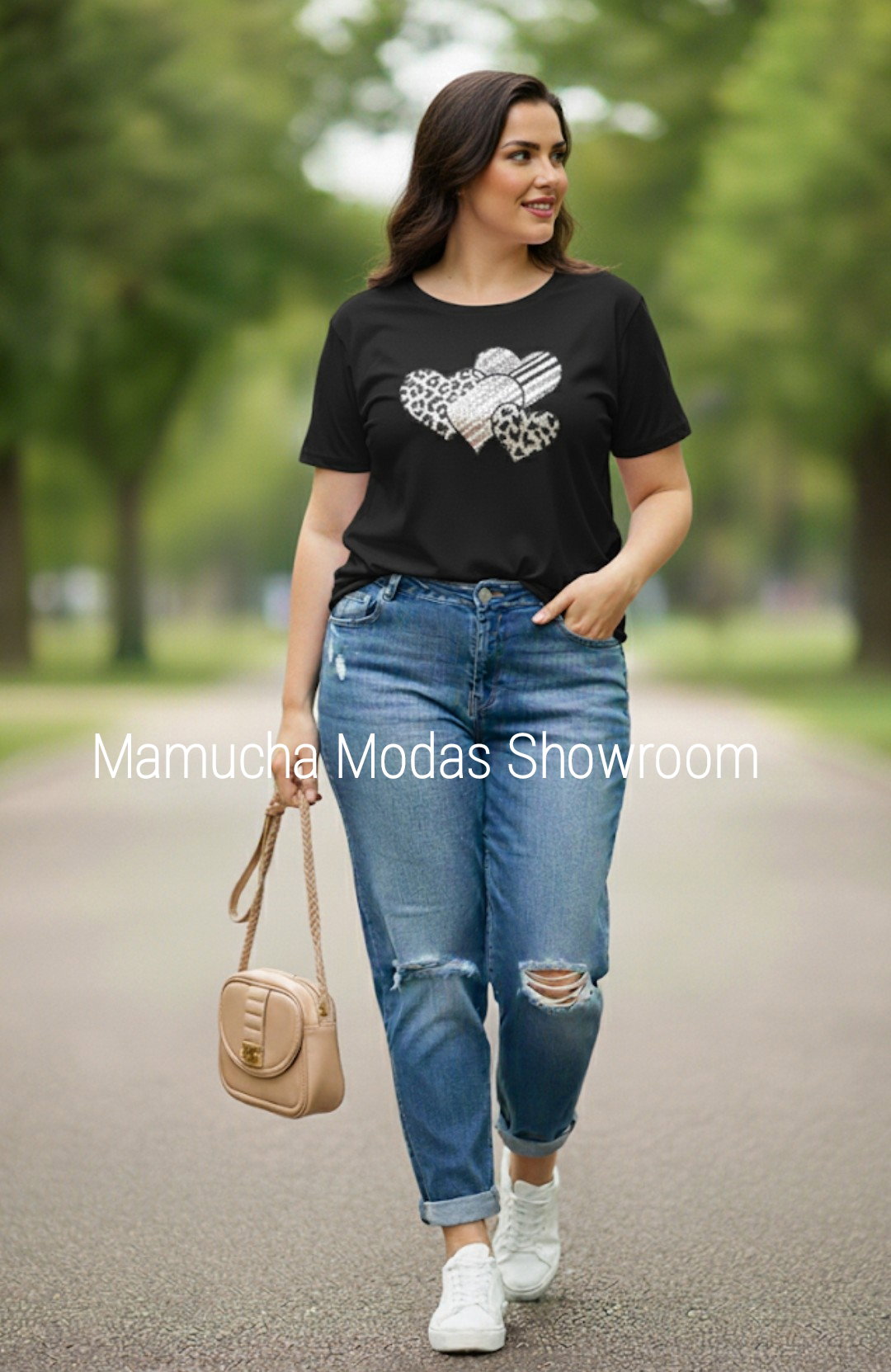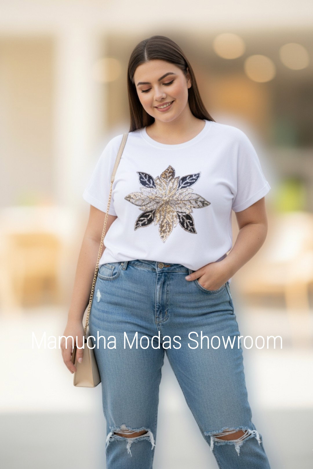 Remera de algodón peinado con apliqué de brillo, medida XL/XXL