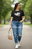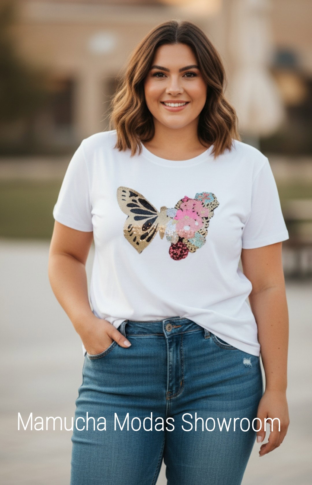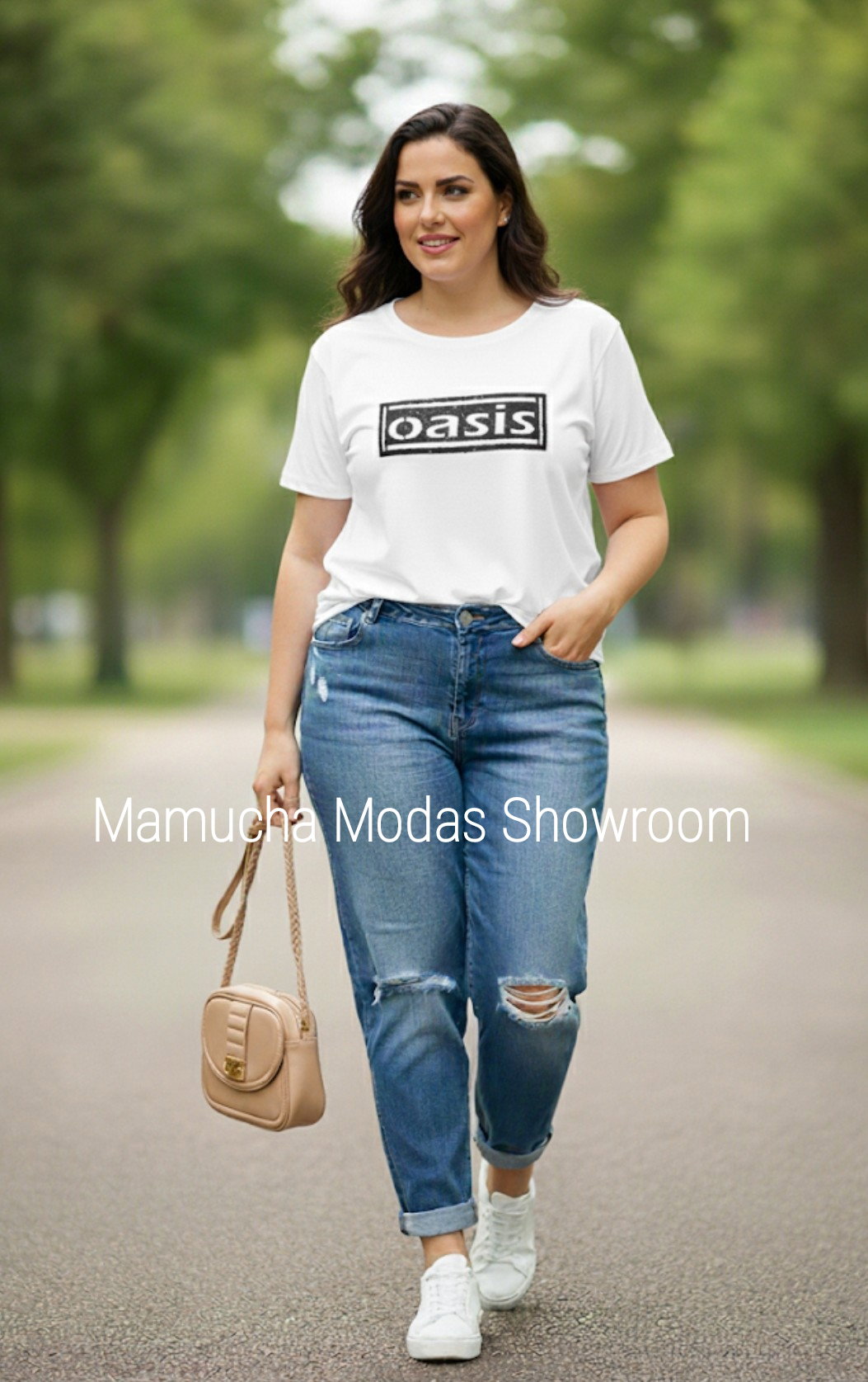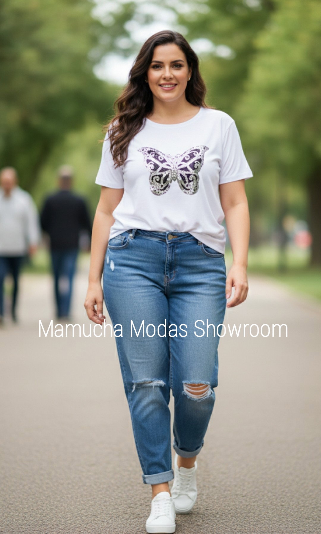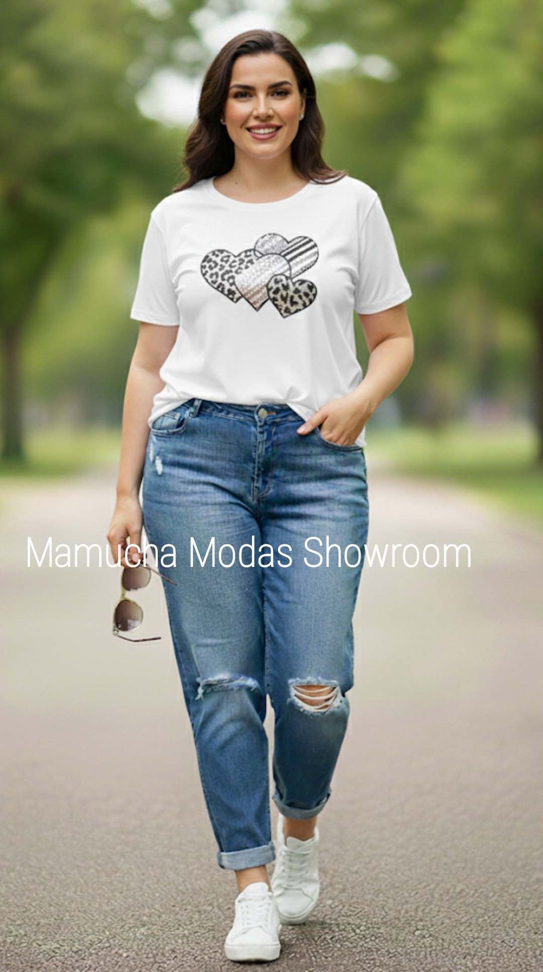 Remera de algodón peinado con apliqué de brillo, medida XL/XXL
