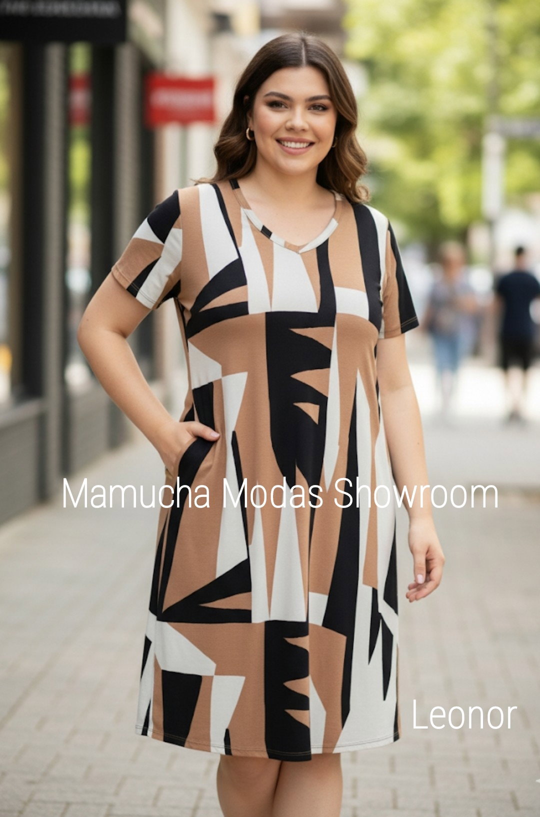 Vestido de viscosa Crepe elastizado y estampado, tiene bolsillos, muy canchero!