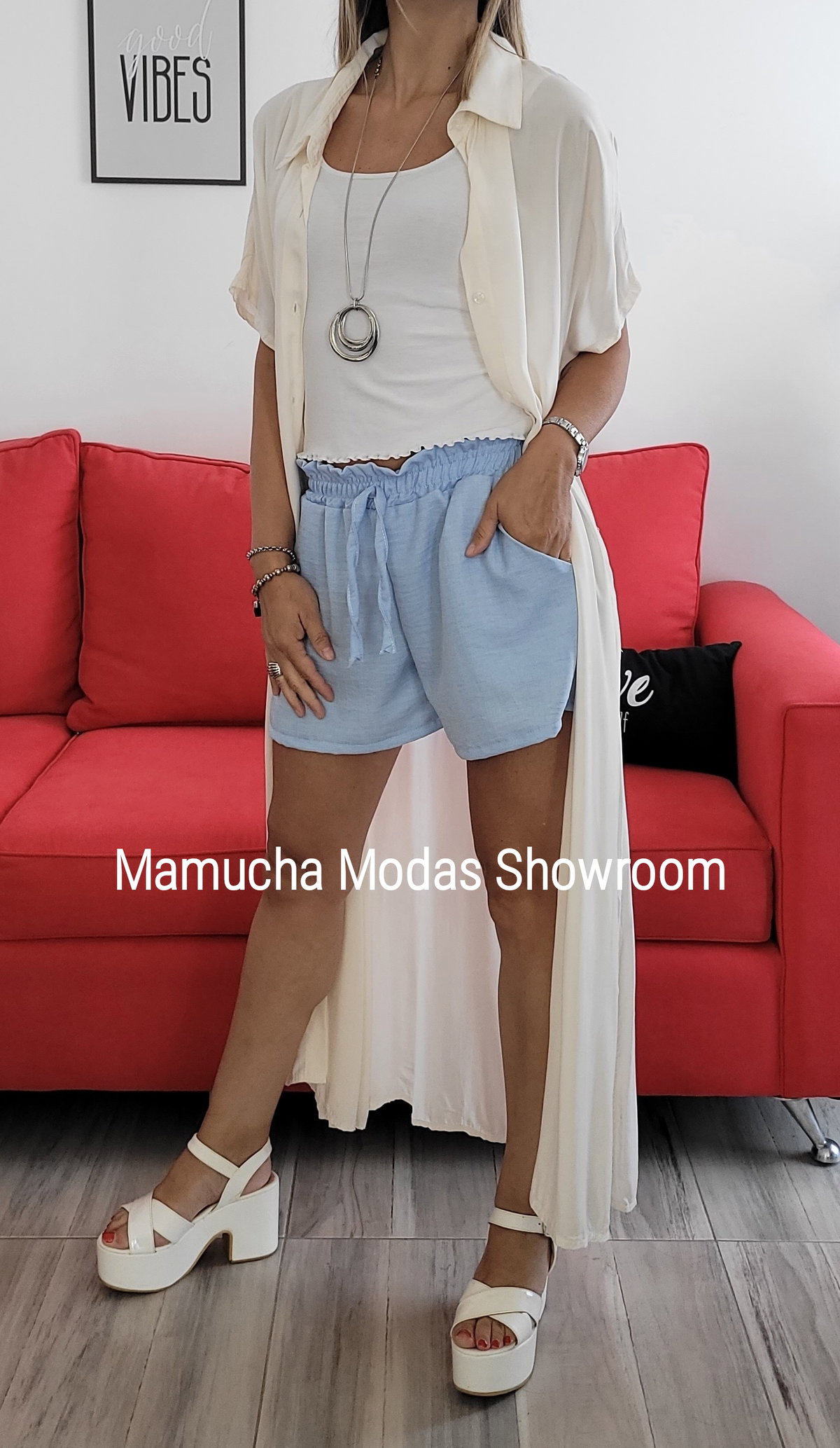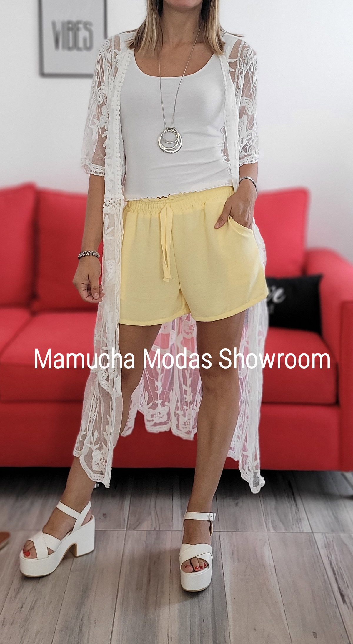 Short de seda cey , con bolsillos y elástico en la cintura