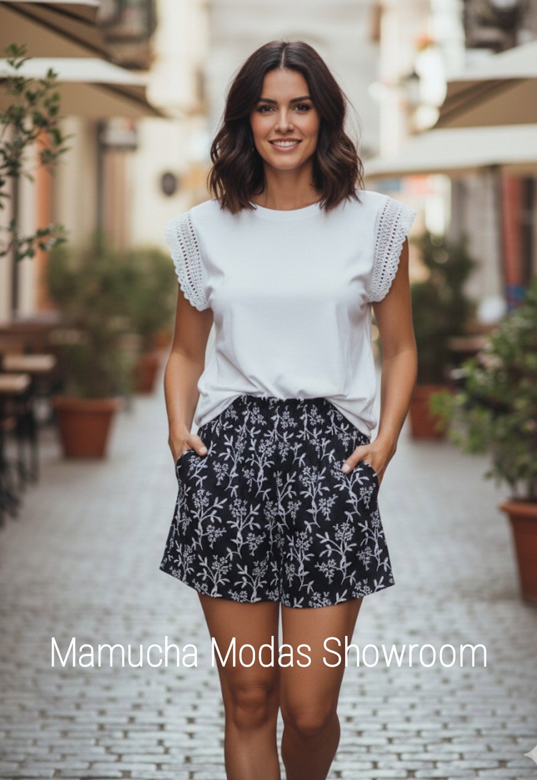 Short de ceda cey liso y estampado con bolsillos y cintura elasrizada , muy cómodo