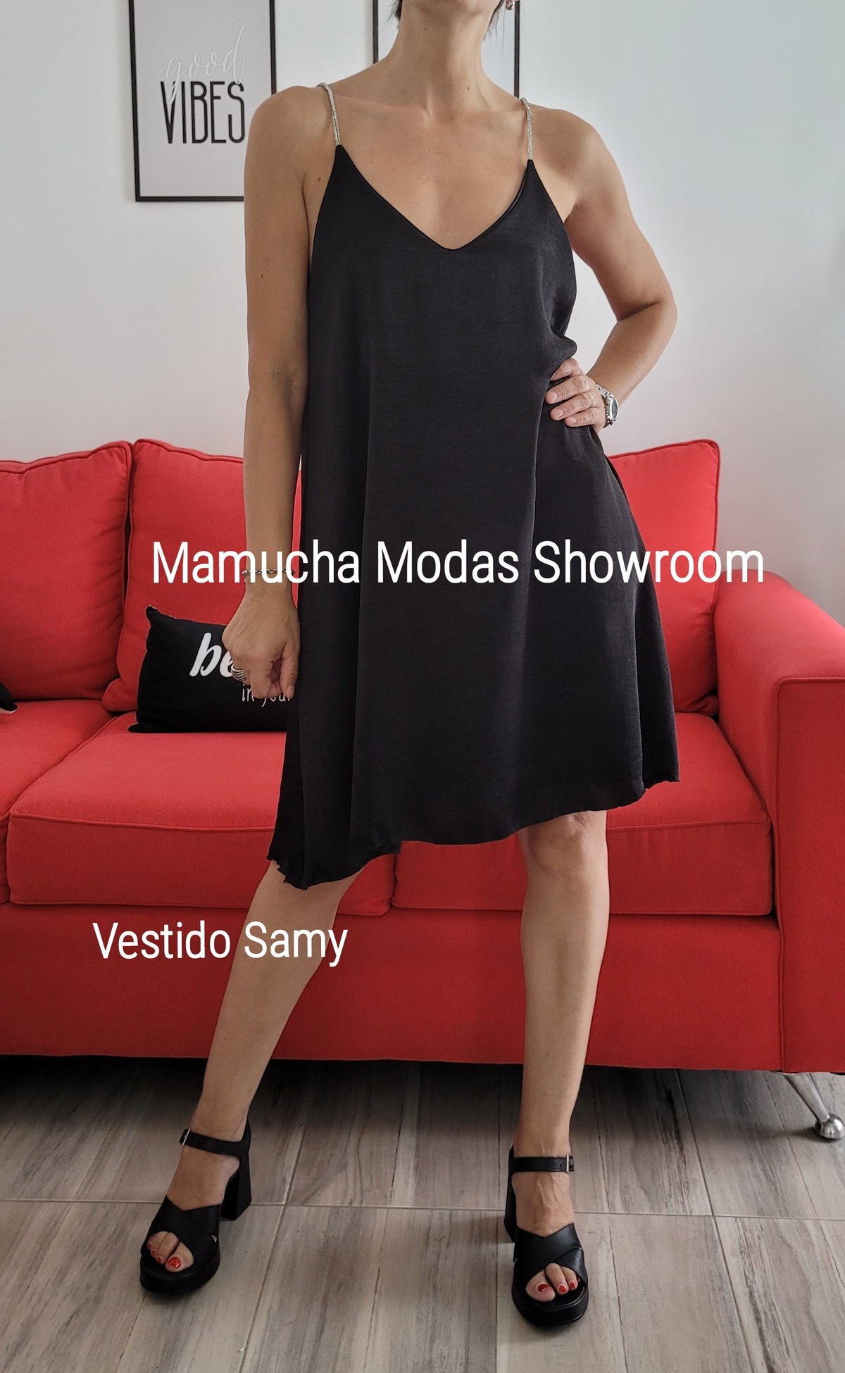 Vestido corto de seda satinada con breteles con strass , muy delicado, se puede usar así suelto o con cinto...