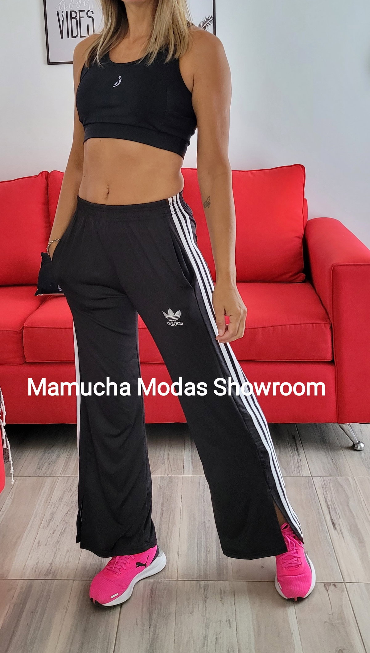 Palazzo de pura lycra con tajo abajo, bolsillos a los costados y cintura alta