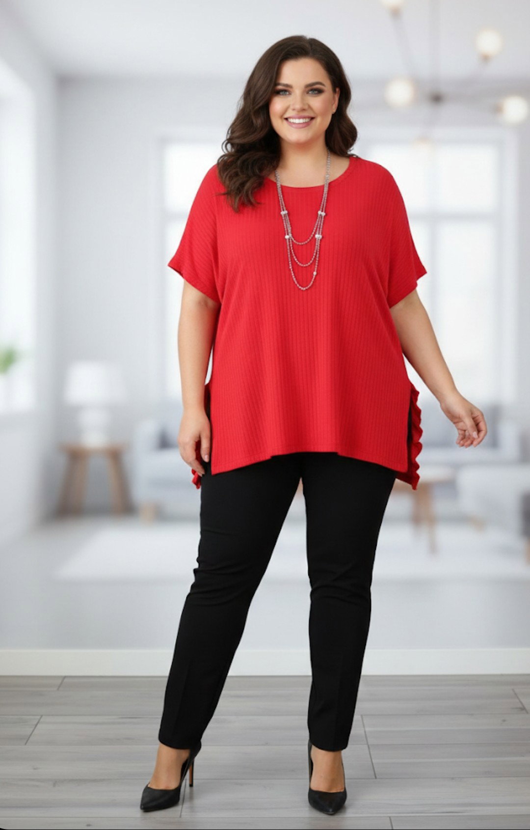 Remera de morley elastizado con tajos a los costados y volados , oversize