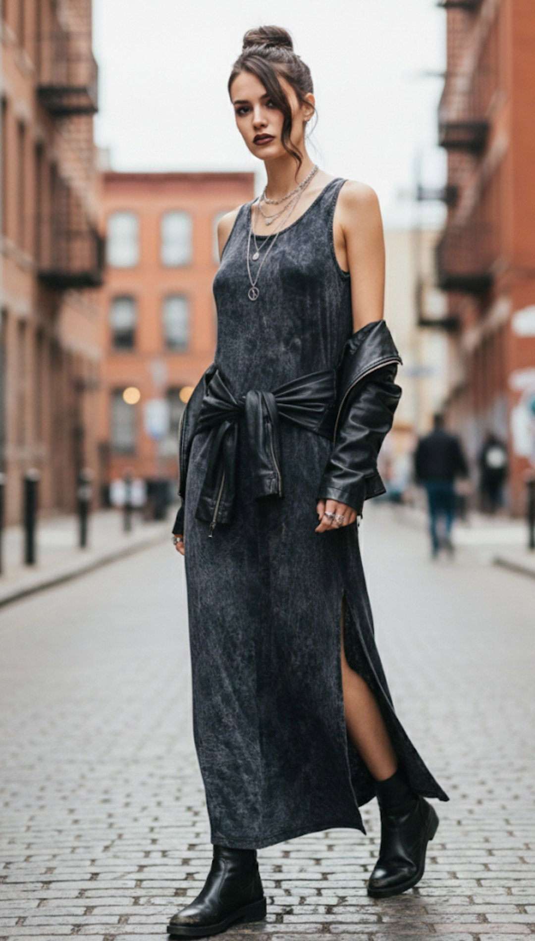 Vestido batik largo con tajos a los costados y bolsillos