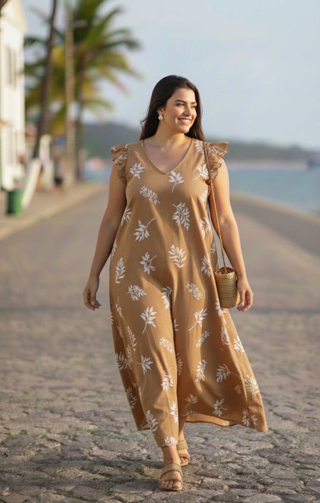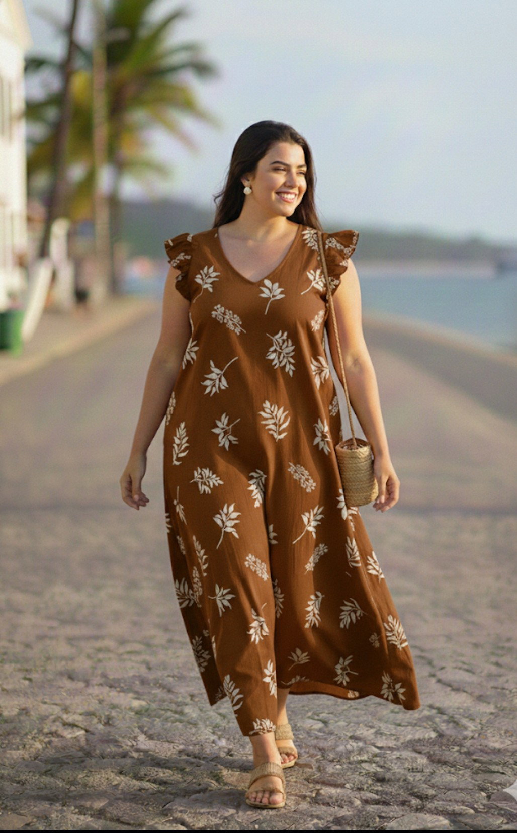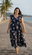 Vestido de ceda cey largo estampado , manguita con voladitos y lazo en espalda , bien largo