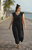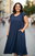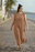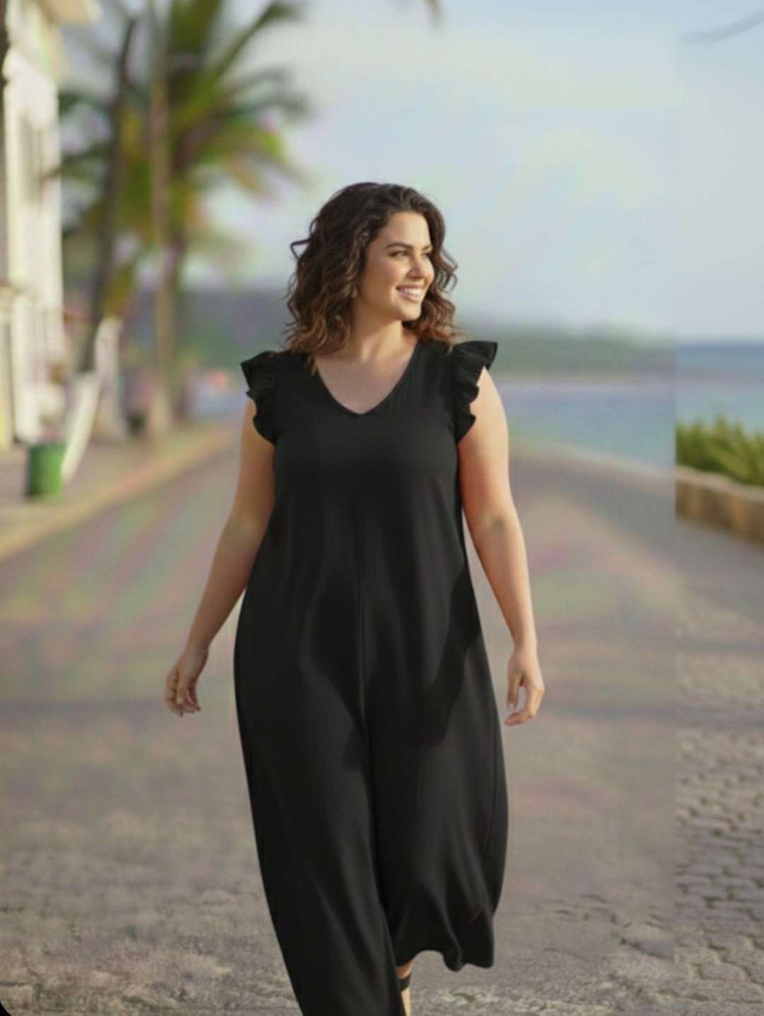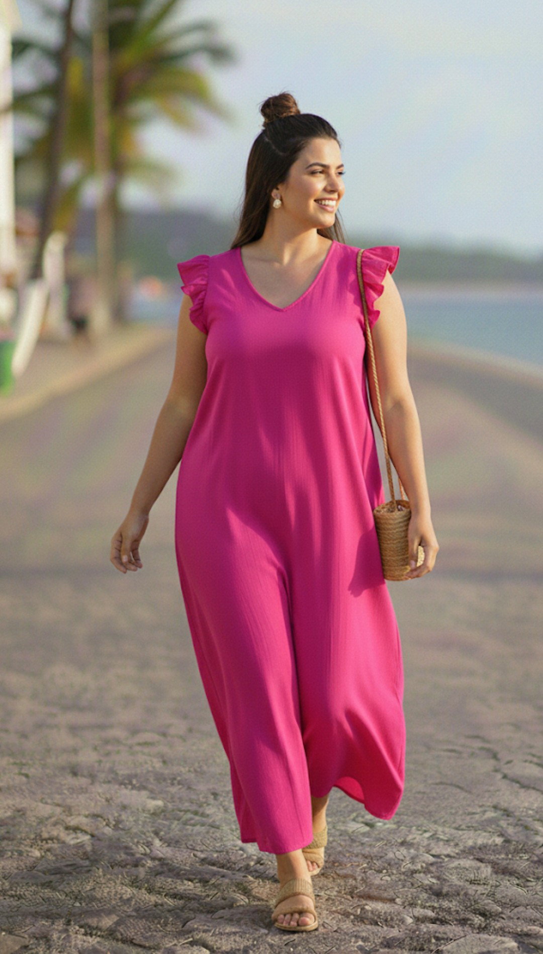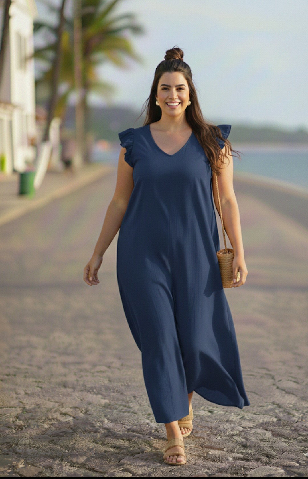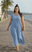 Vestido largo de seda cey con voladitos en los hombros , lazo en la espalda.