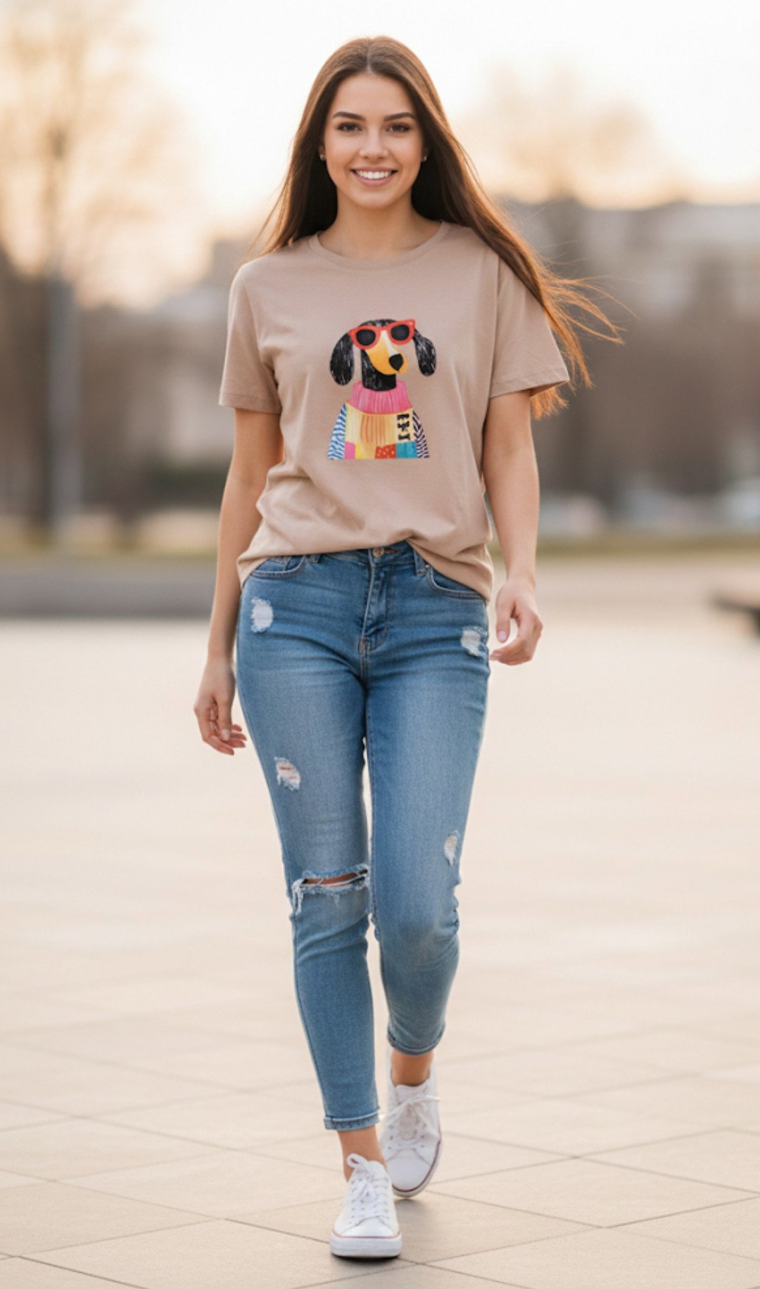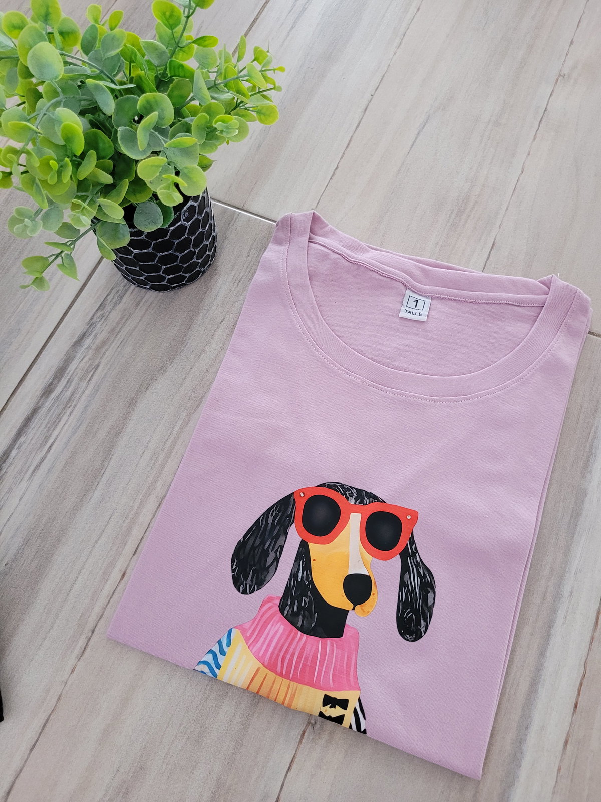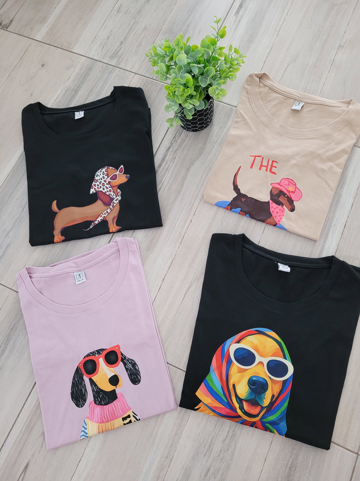 Remeras de jersey peinado estampadas con perritos, gran variedad de estampados y tonos