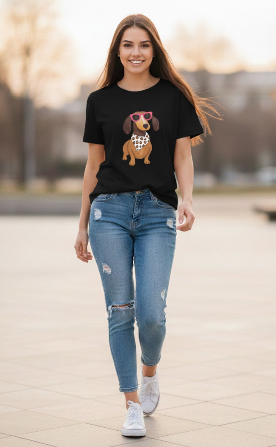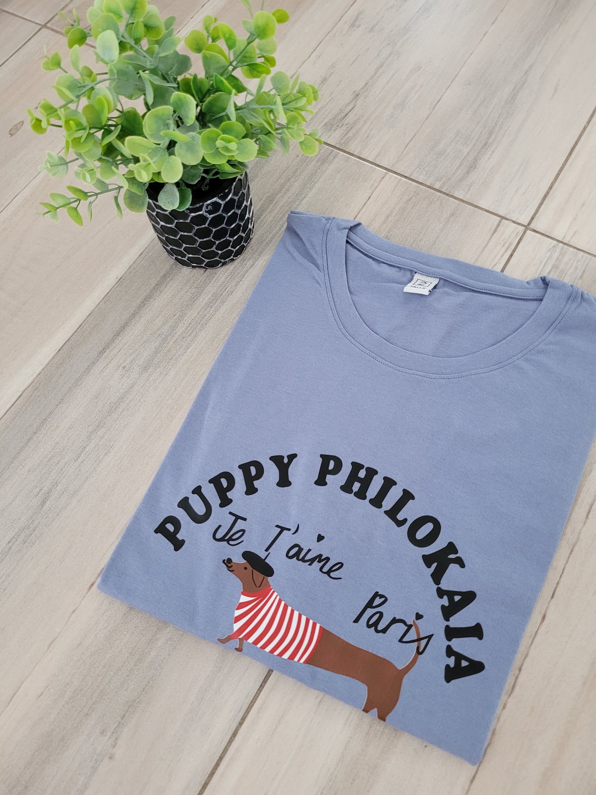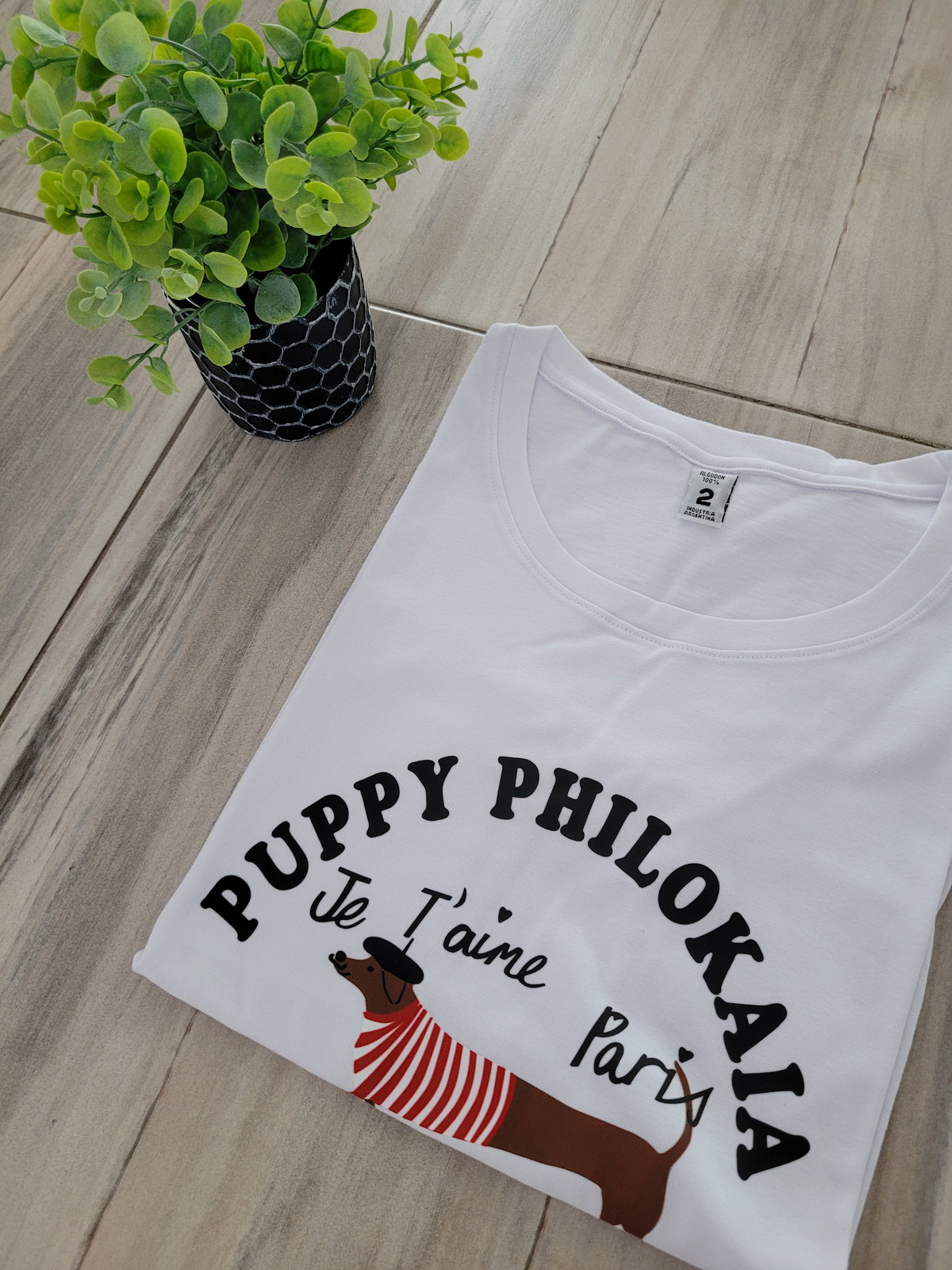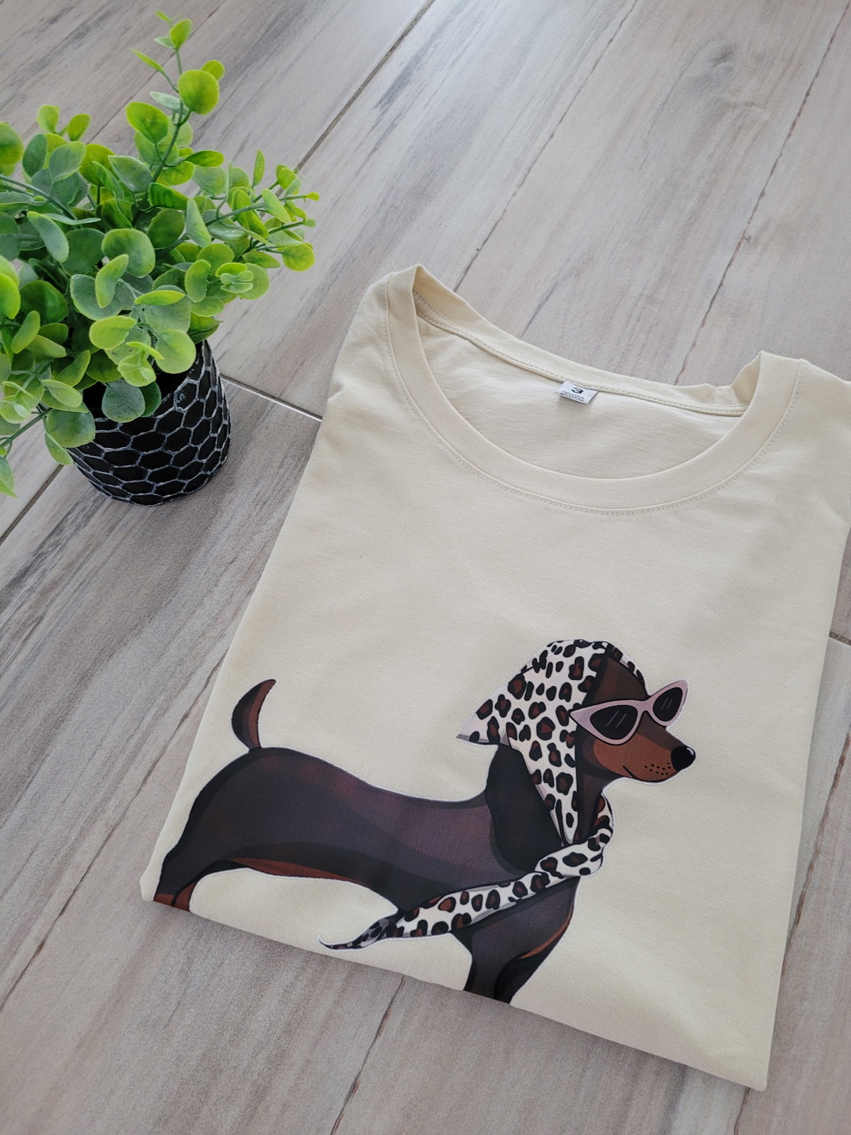 Remeras de jersey peinado estampadas con perritos, gran variedad de estampados y tonos