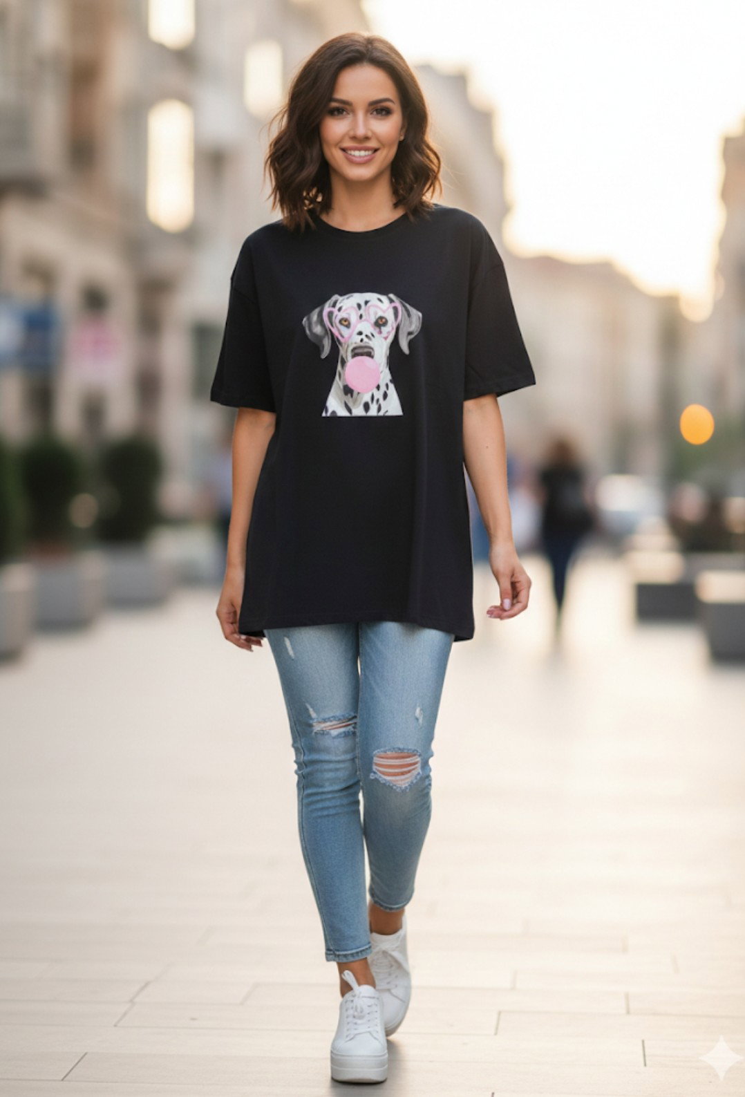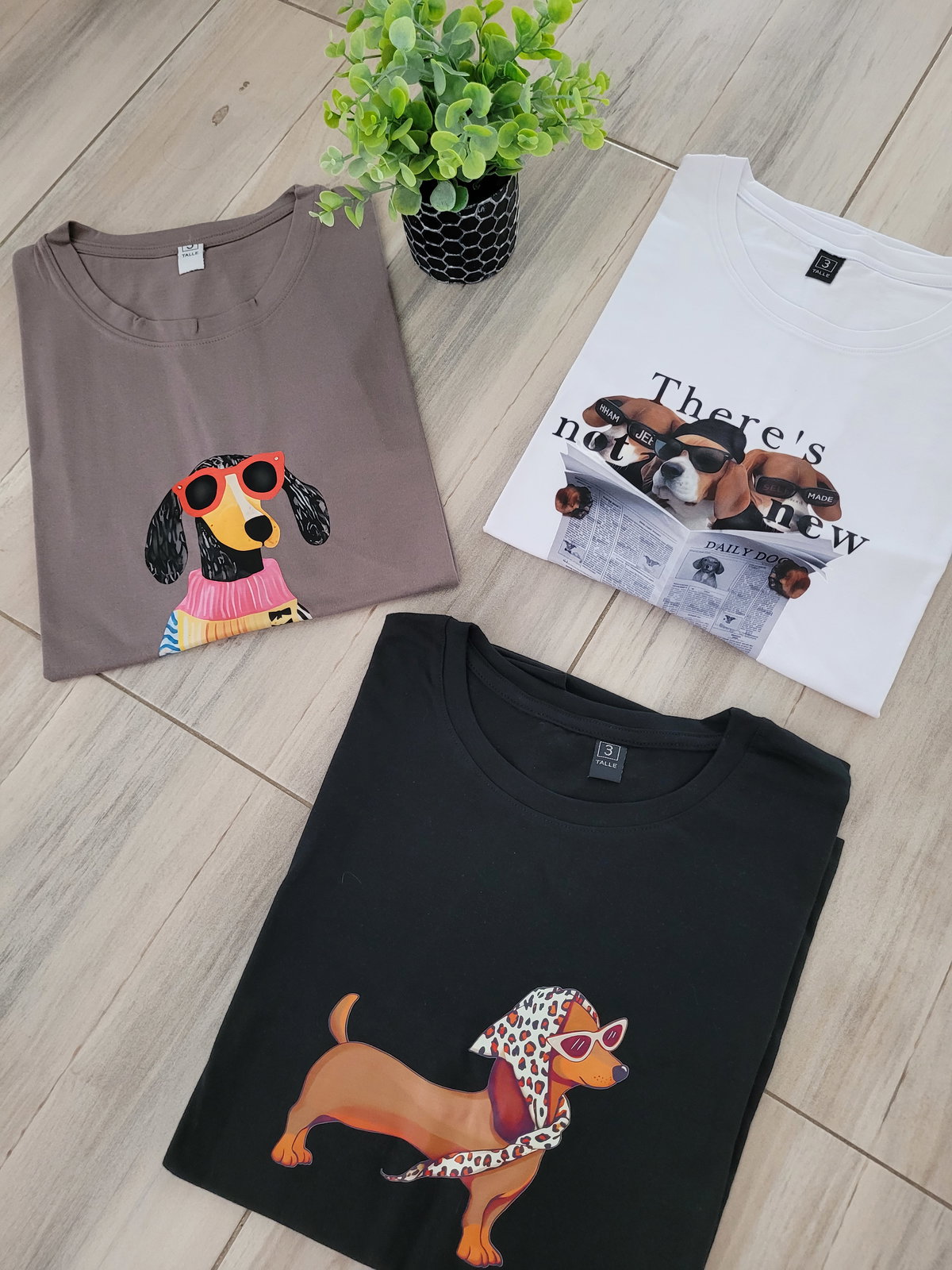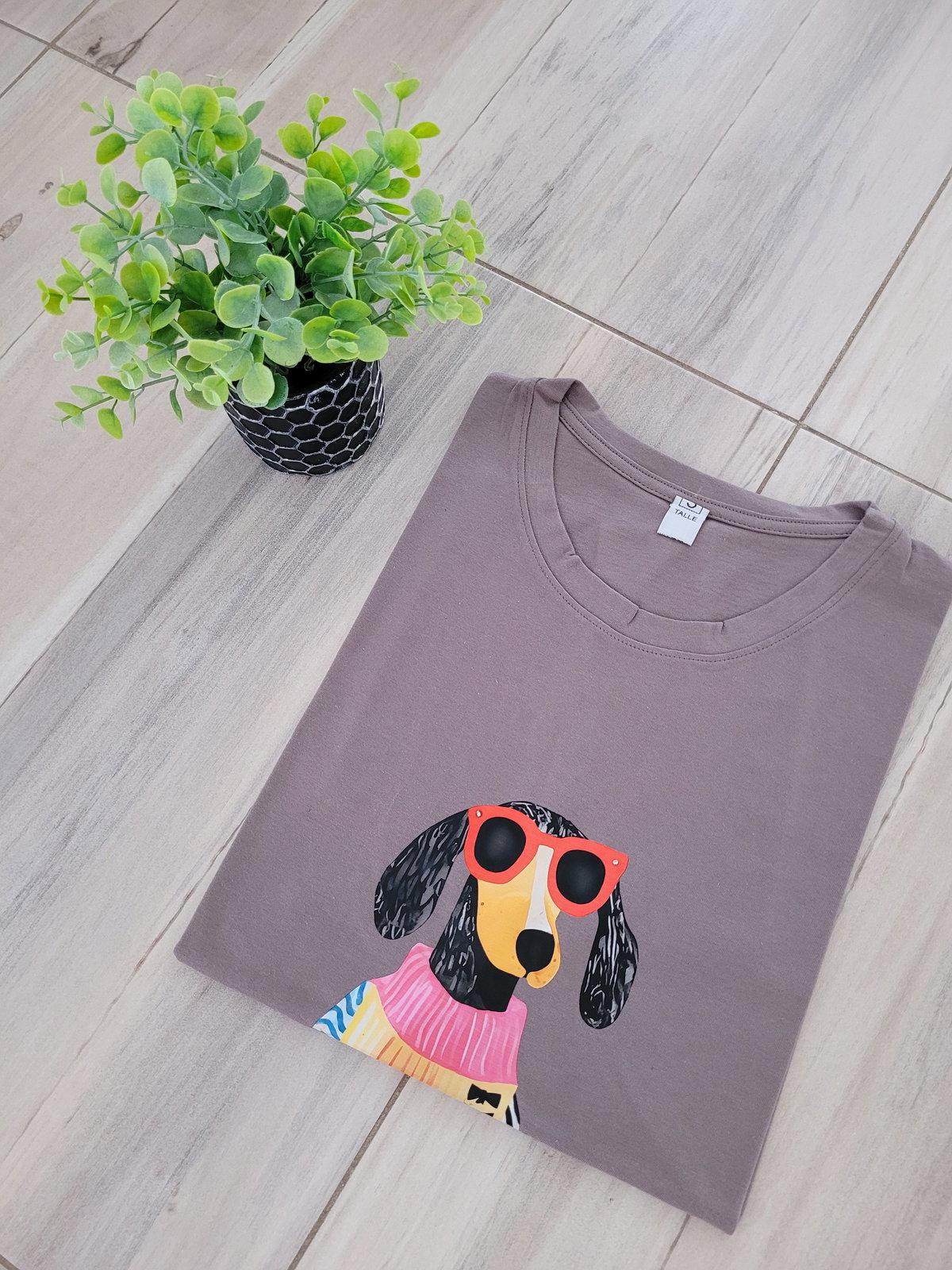 Remera de jersey peinado con estampas de perritos , variedad de tonos