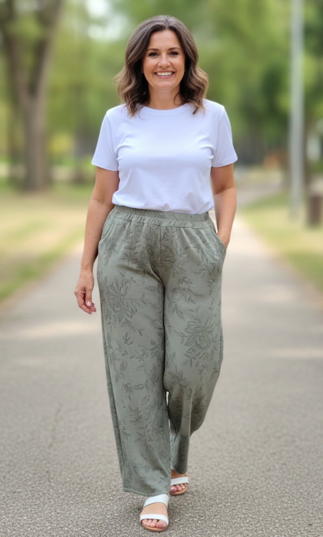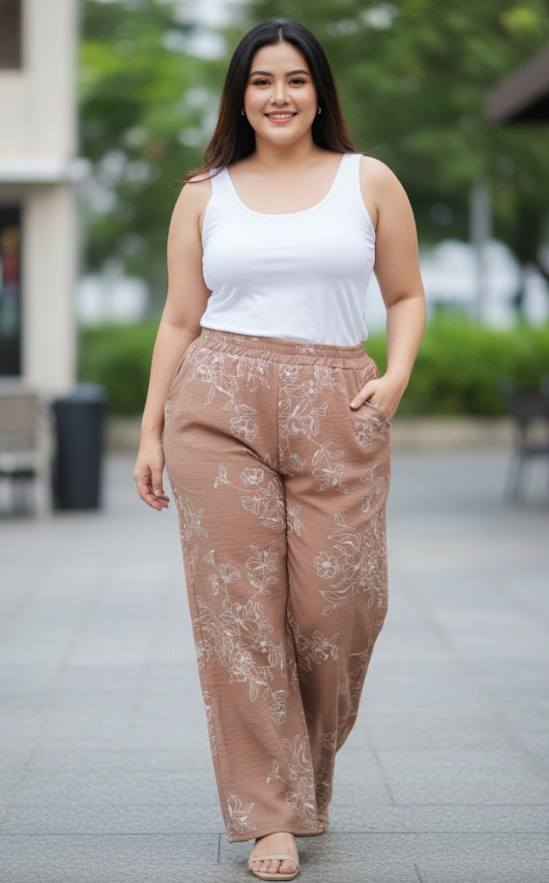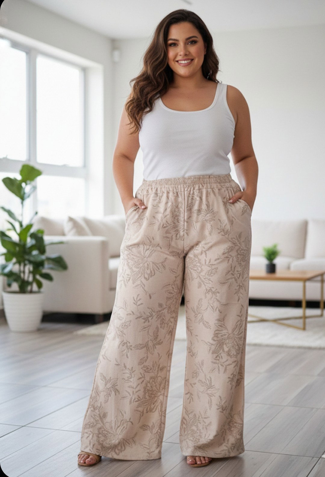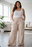 Palazzos de seda cey simil bordasos, cintura elastizada y bolsillos adelante , muy moderno .