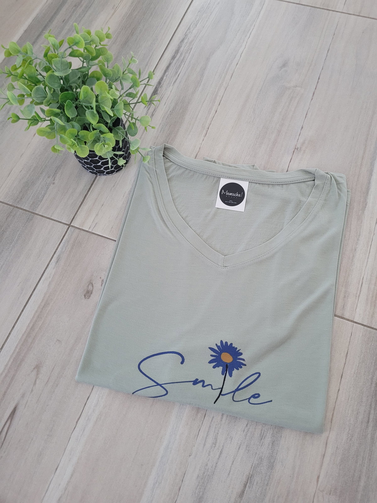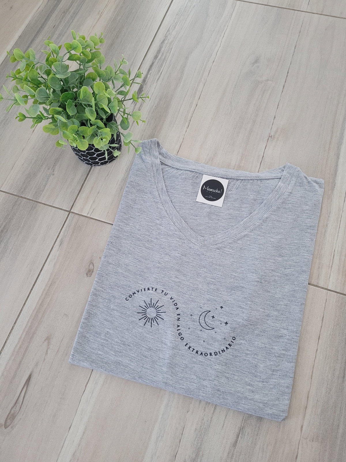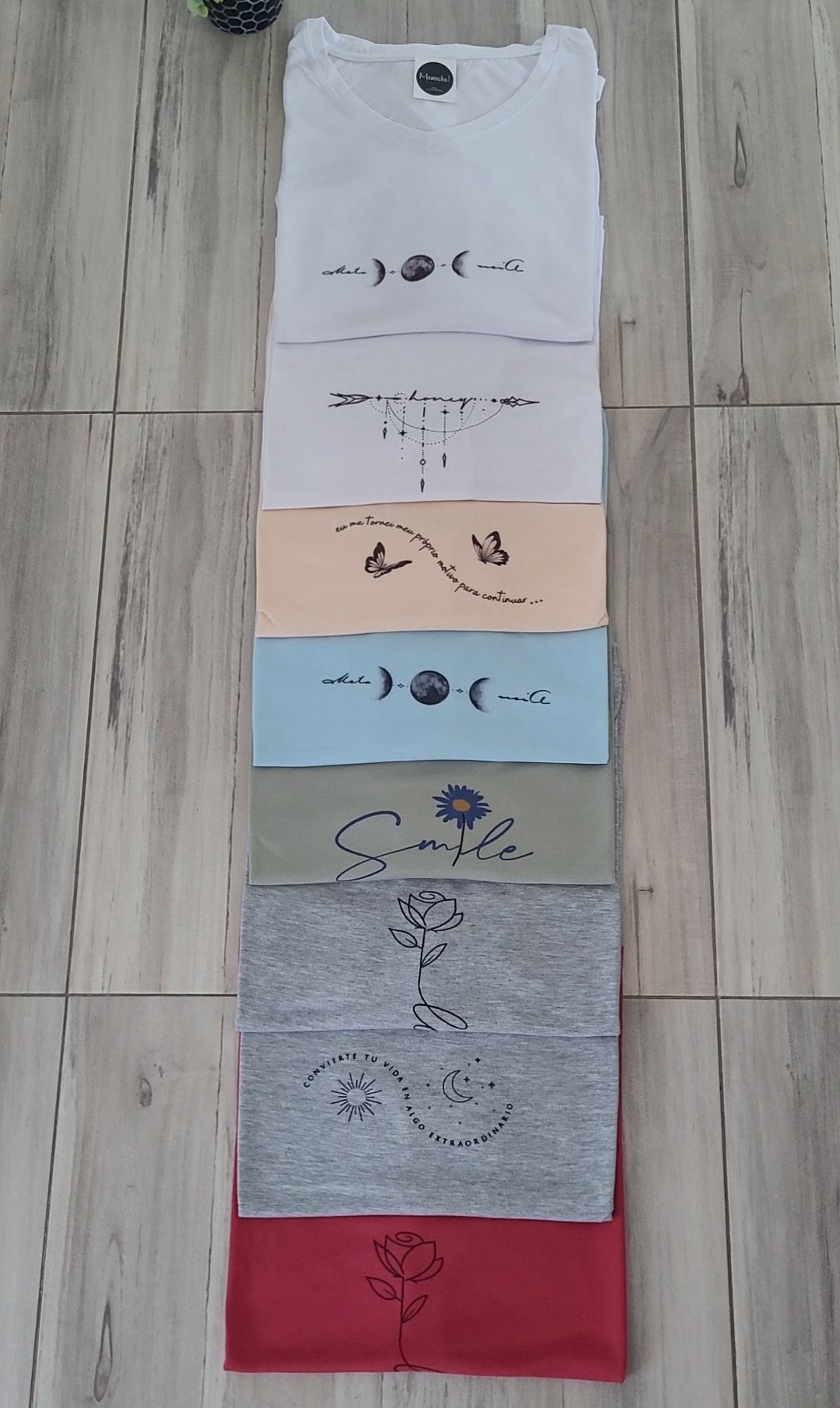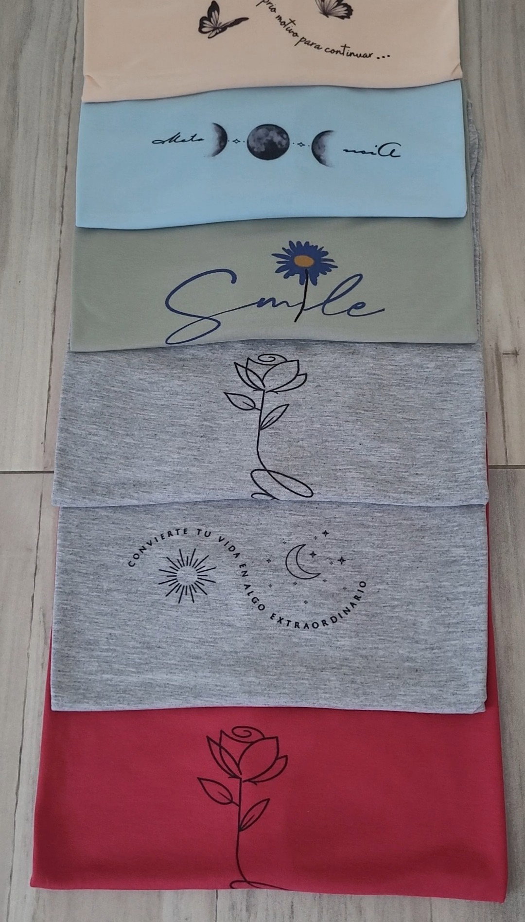 Remera de algodón spum estampada, cuello V , varios estampados y tonos