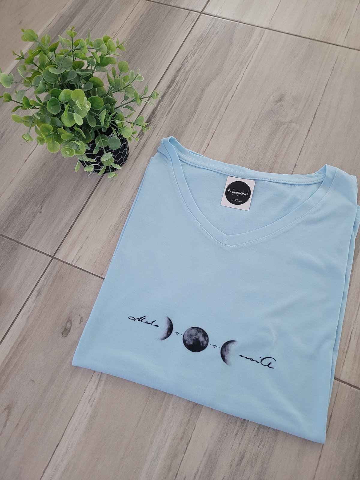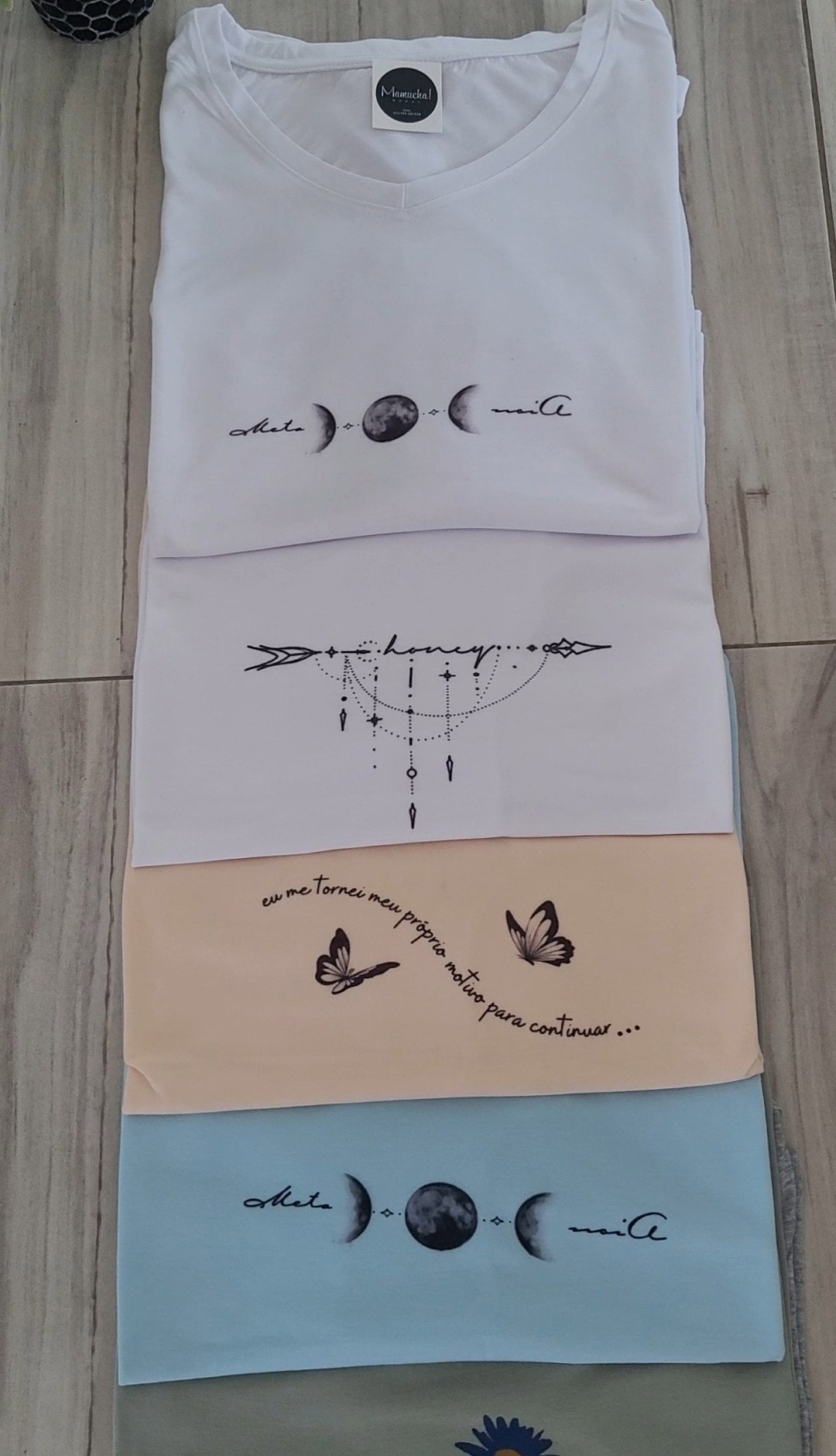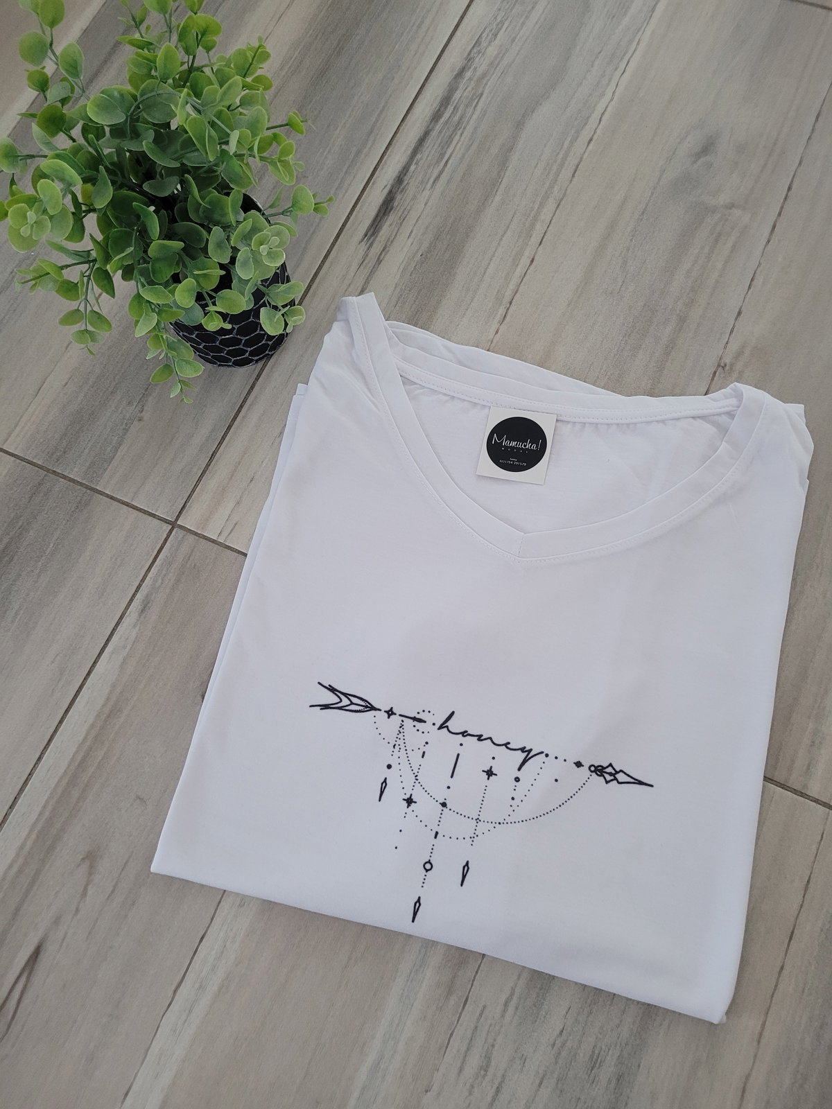 Remera de algodón spum estampada, cuello V , varios estampados y tonos