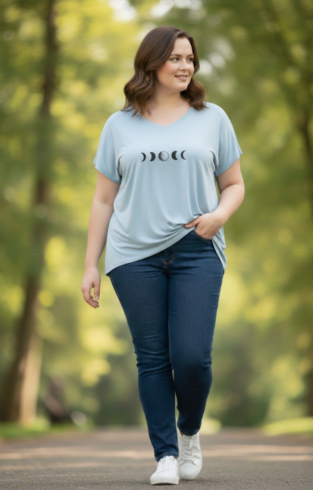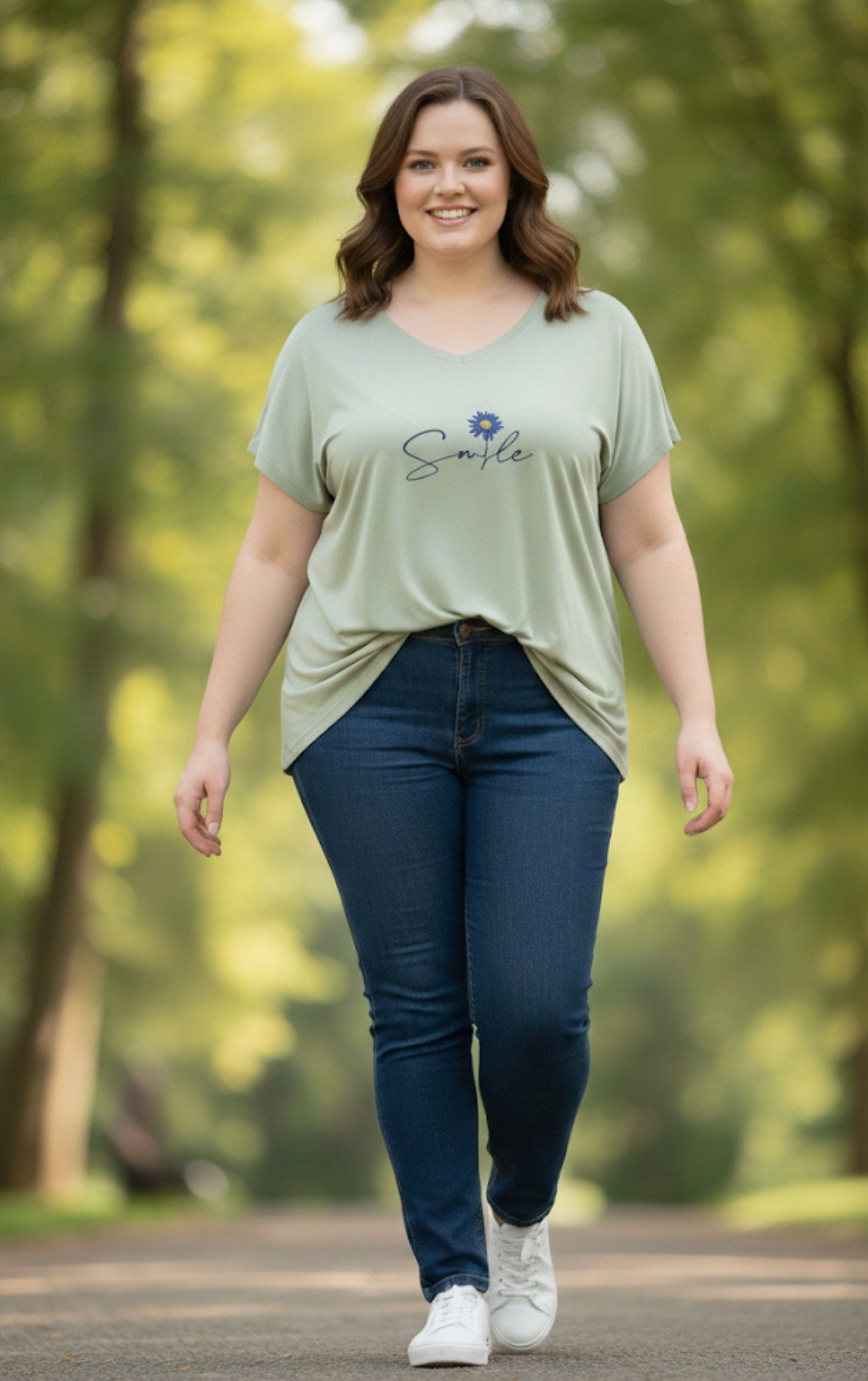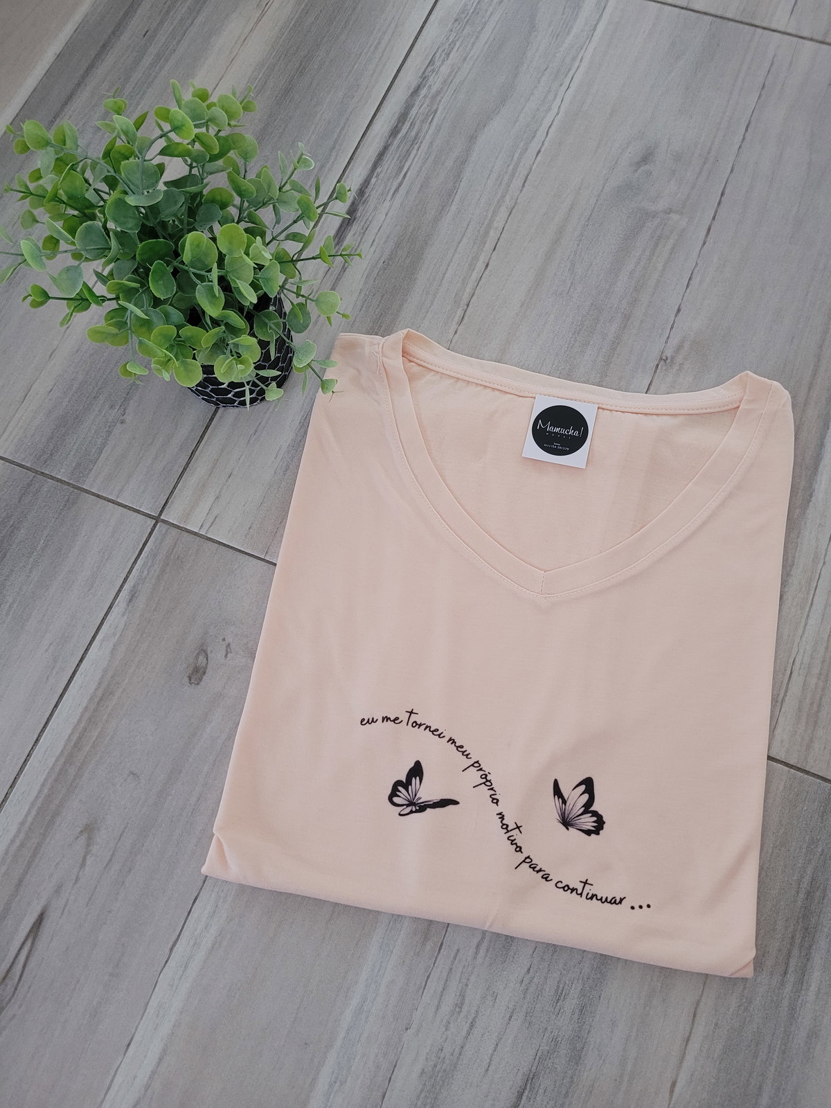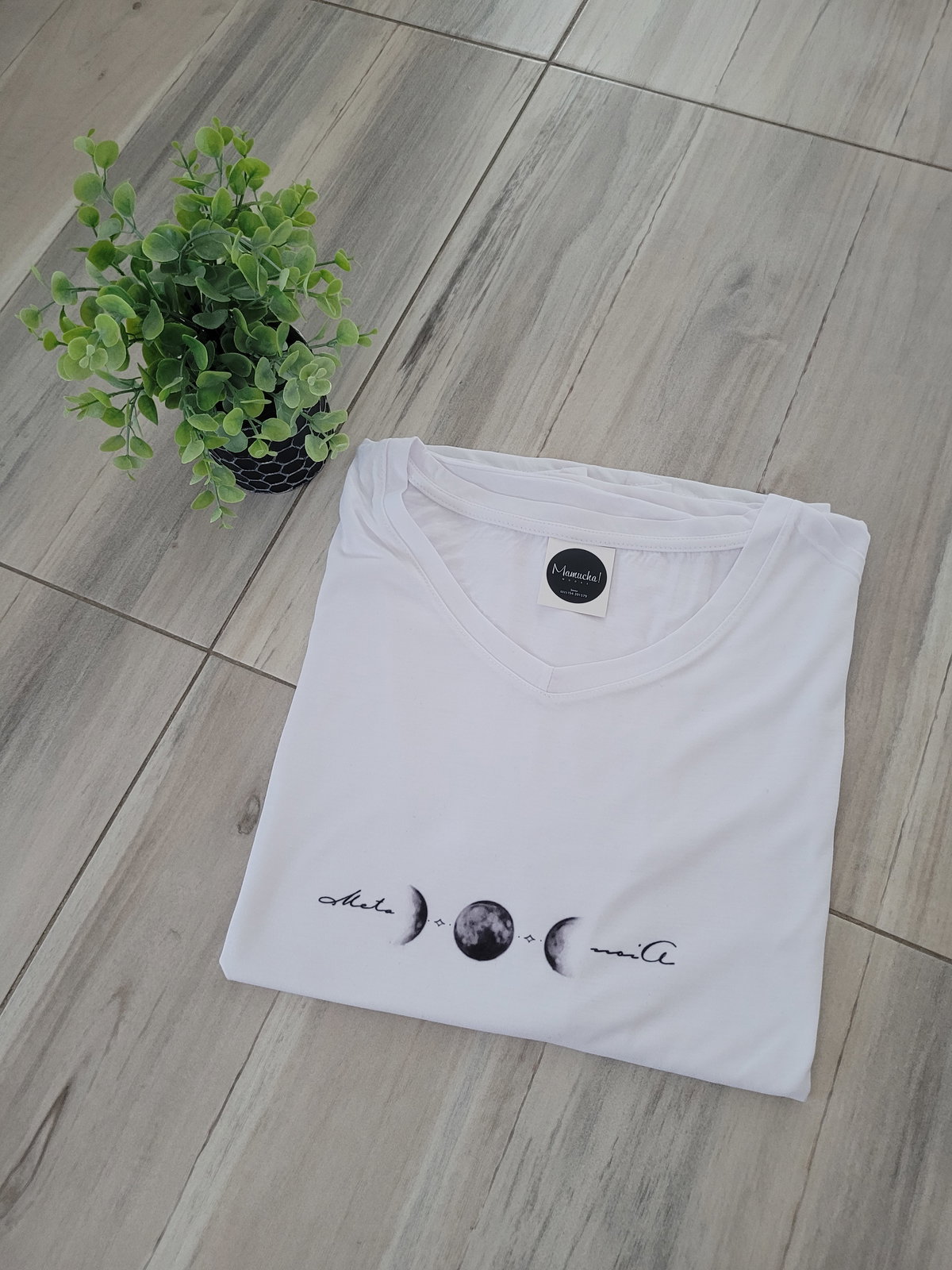 Remera de algodón spum estampada, cuello V , varios estampados y tonos